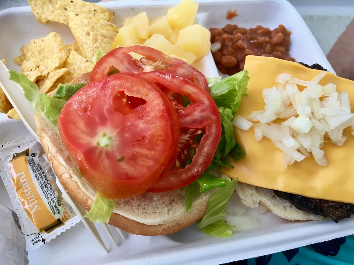 昼食時間はハンバーガーを受け取っても、座って食べる場所がなく、