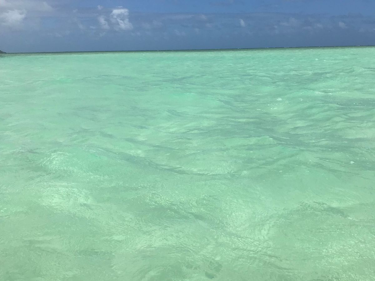 The weather was a bit cloudy, but the sandbar was still very beautiful. It was fun to see several sea turtles. It was disappointing that I could hardly see any fish while snorkeling, possibly because it was after the hurricane.