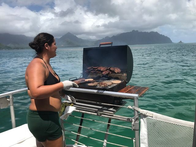 サンドバーで遊んだ後は、船の上でハンバーガーを食べました。その場で焼いてくれていて、とても美味しかったです✨