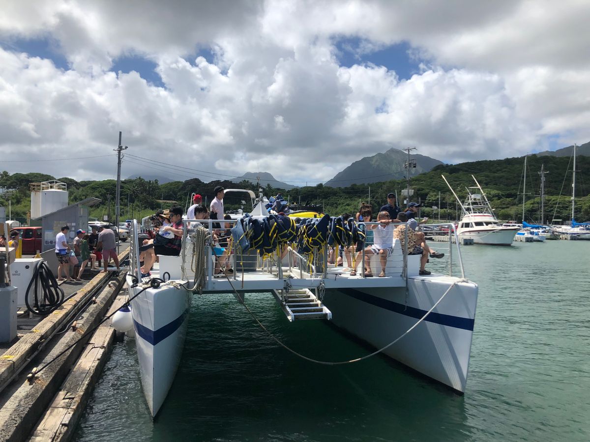 The pier is near to the sandbar, it won't take too much time to sailing to there. With clean water and beautiful sandbar scenic, we had a very great time there! During lunch time, with awesome hawaii burger, and enjoy the music singing by the crew, it's the biggest pleasure. Seeing so many green sea turtles is an unforgettable experience, snorkeling around the reef also fun.