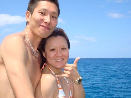 We participated as a family of four, including our 5-year-old and 9-year-old sons. During our dolphin watching tour in Guam, we felt somewhat unsatisfied just watching dolphins from the boat. That's why we were really looking forward to "swimming with the dolphins" this time. Our strong sons, who mastered snorkeling at the age of four and have often played with fish in overseas waters, dove into the sea without any hesitation, despite the staff's concerns! On this day, we couldn't get close to the dolphins, and we desperately chased them around at the staff's signals. It was quite challenging... However, when we saw the dolphins swimming right beneath us, we were moved. Since we were dealing with wild dolphins, whether they come close enough to touch is a matter of luck. We wished we could have seen them up close and heard their cries, but we look forward to next time. We also encountered about four turtles. For those with small children, you can enjoy watching dolphins from the boat, but opportunities to swim with them are rare. If you're considering having your child try snorkeling, I recommend buying a MY mask and practicing in the bath (that's how our kids mastered its use) to prepare for the real experience. It should be a great experience!