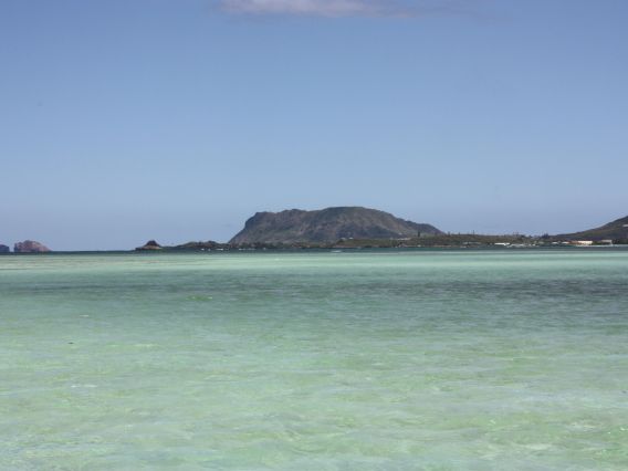 ボートの調子が悪くて出発が遅れることがなければ、もうちょっと浅かったのかなあ、と思いました。足元は白い珊瑚の砂で、クアロアの山々も見えて、とてもきれいでした!