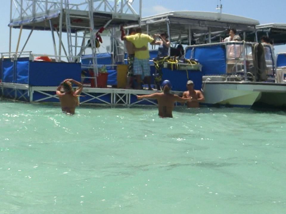 サンドバーの近く、ボートがとまったところは腰上くらいの深さで、そこからサンドバーを目指して歩きました。浅いところで降りれるのかと思っていたので、残念ながら祖母には無理でしたが、船上だけでも楽しかったようです。