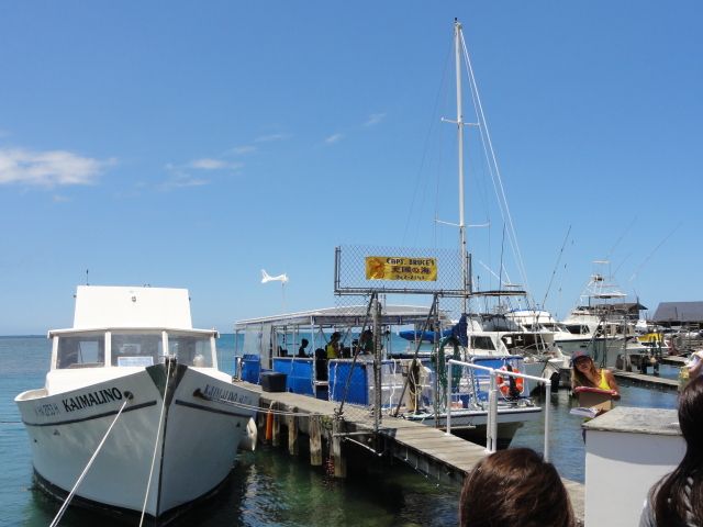 シュノ−ケリングは楽しめません、わずかなサンゴを眺めるだけ、フィンなしでは少々辛い。船上のランチは、まあまあかな。