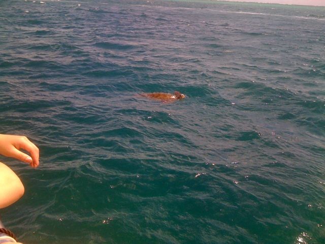 We saw several sea turtles from the boat on the way to the sand bar.
