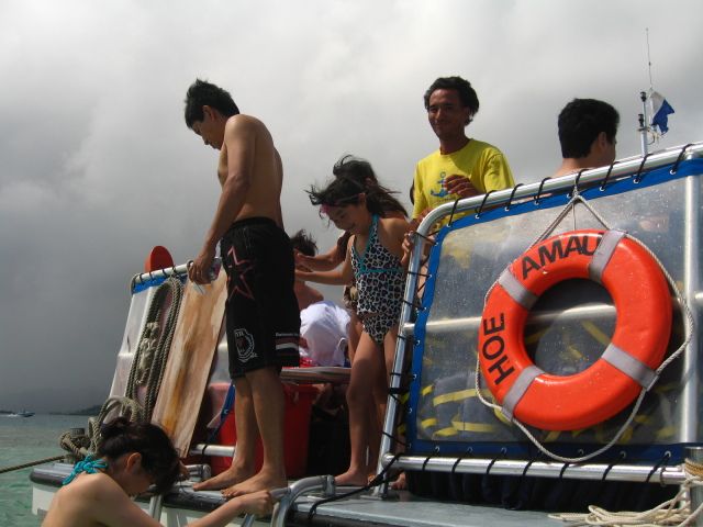 The boat had a roof, so I wasn't exposed to direct sunlight, and after swimming in the ocean, it was nice to have warm tea served if I got cold. I appreciated that a lot. They took photos and sold them on DVD, so I didn't even need to bring my camera, which made it convenient.