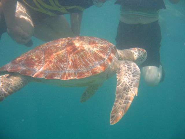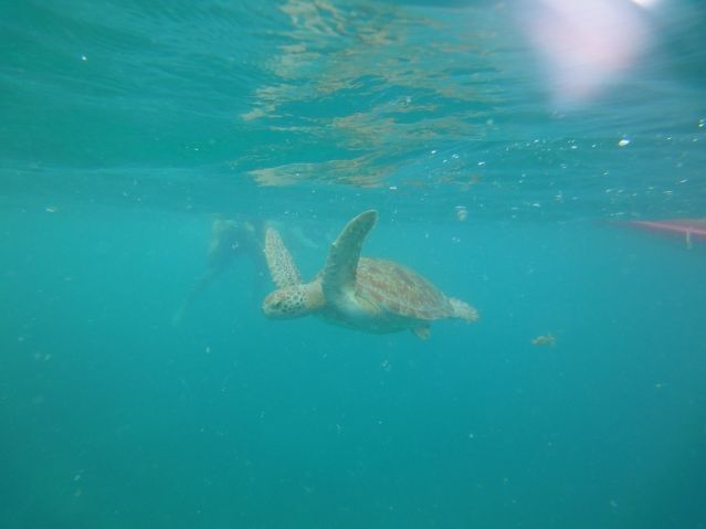 While snorkeling, a turtle appeared right in front of me and swam towards me as I was getting my camera ready, which was a bit scary, but I was able to play with the turtle after snorkeling.