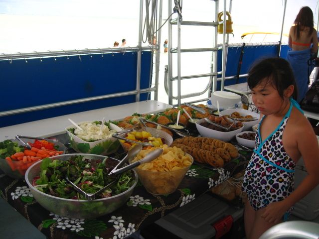 ですが、スタッフの方がいろいろ気遣って親切にしてくださるし、シュノーケルや船上フラなど楽しめました。