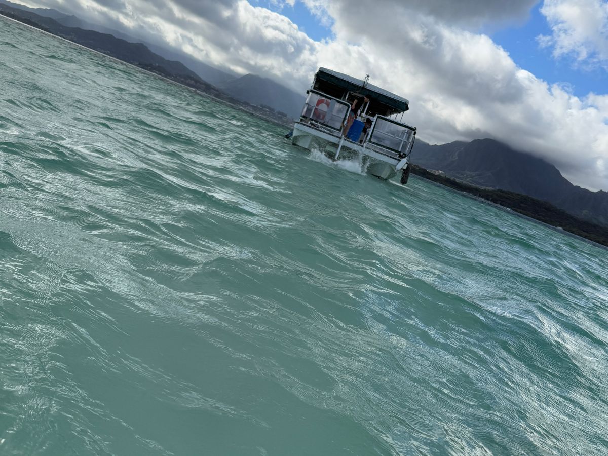 12月のハワイ冬の季節でサンドバーは海水の下でしたが、エメラルドグリーンのサンドバーに降り、素晴らしい体験でした。サップで遊んで、初シュノーケリングで熱帯魚、海ガメを見る事ができ楽しかったです。