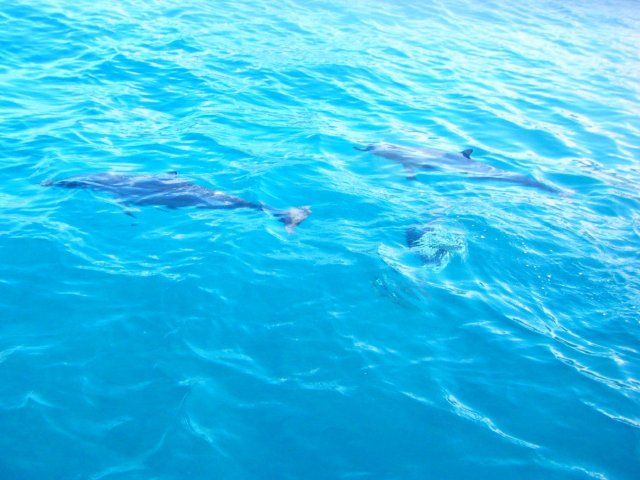 呼吸の為、水面へ上がってくる時には、イルカとの距離は1Mも離れていなかったと思います。イルカも好奇心旺盛で、スピンジャンプなどでお出迎えしてくれました。