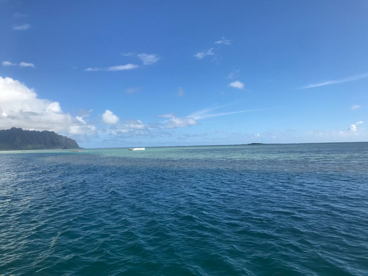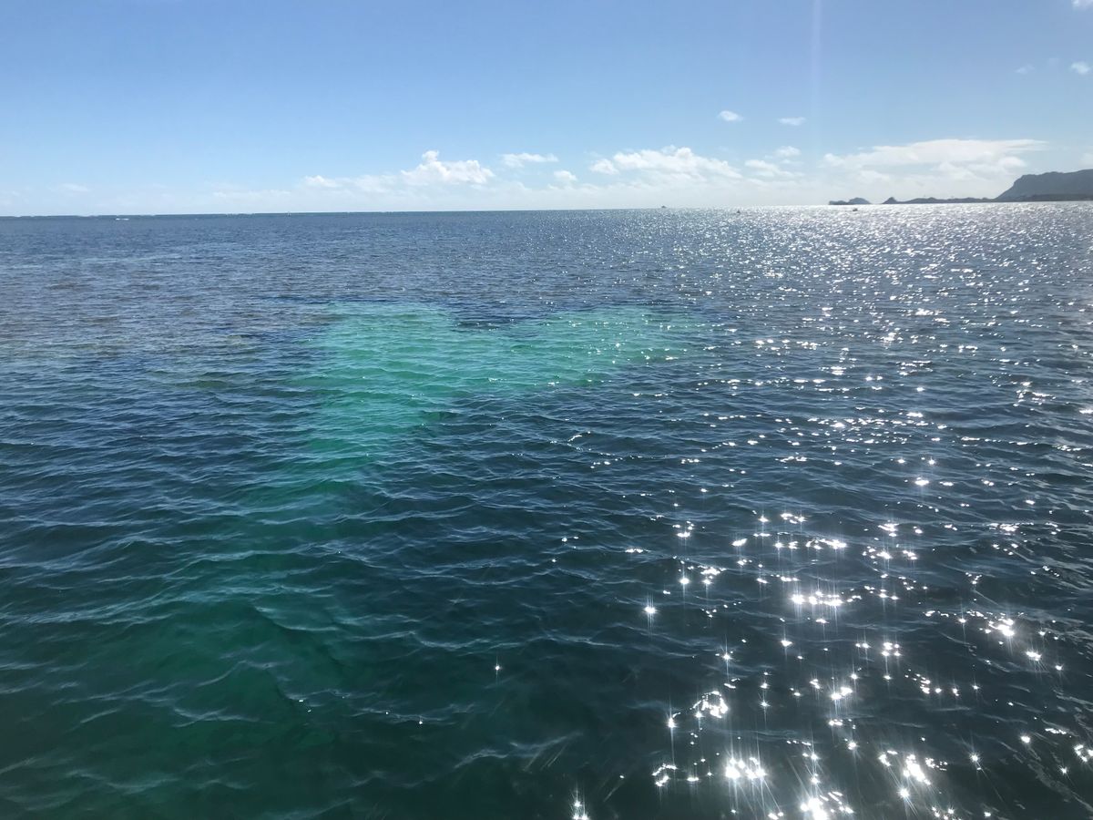 We cross over Moiliili Pond to get to the ocean, so there is a transfer along the way. Once we are out at sea, if you're at the front, you get splashed with water when the boat bounces. I think it was intentional, but it was exciting.