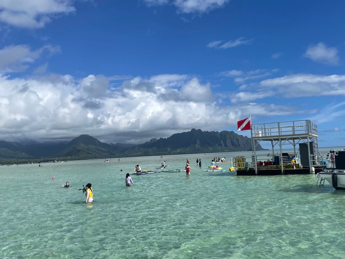 The sandbar had knee-deep seawater, which was disappointing, but the snorkeling was the best! We enjoyed it even more than Hanauma. It was great to see many sea turtles, from large ones to small baby turtles. We all talked about how we wish we had more time for snorkeling...