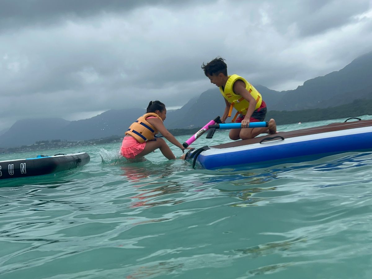 It is located just a short boat ride from the port. The activity is divided into two parts: we first enjoyed stand-up paddleboarding (SUP) in shallow waters, and in the second half, we went snorkeling. I had imagined a sandy beach during low tide, but since we went during high tide, we paddled in shallow waters that were about knee-deep for adults. We let the little ones ride on a small boat float (as shown in the posted photos) and pulled them around for fun. However, the snorkeling part goes quite deep, so while we wore life jackets, it might be a bit challenging for children who are not accustomed to snorkeling. In the end, we put the kids on a ZAYAK, but it didn't provide the stability we expected. Nevertheless, there is a good chance of seeing sea turtles. It would have been better if they had provided a more stable see-through boat float for the kids. Also, the water temperature in the morning is a bit on the cooler side.