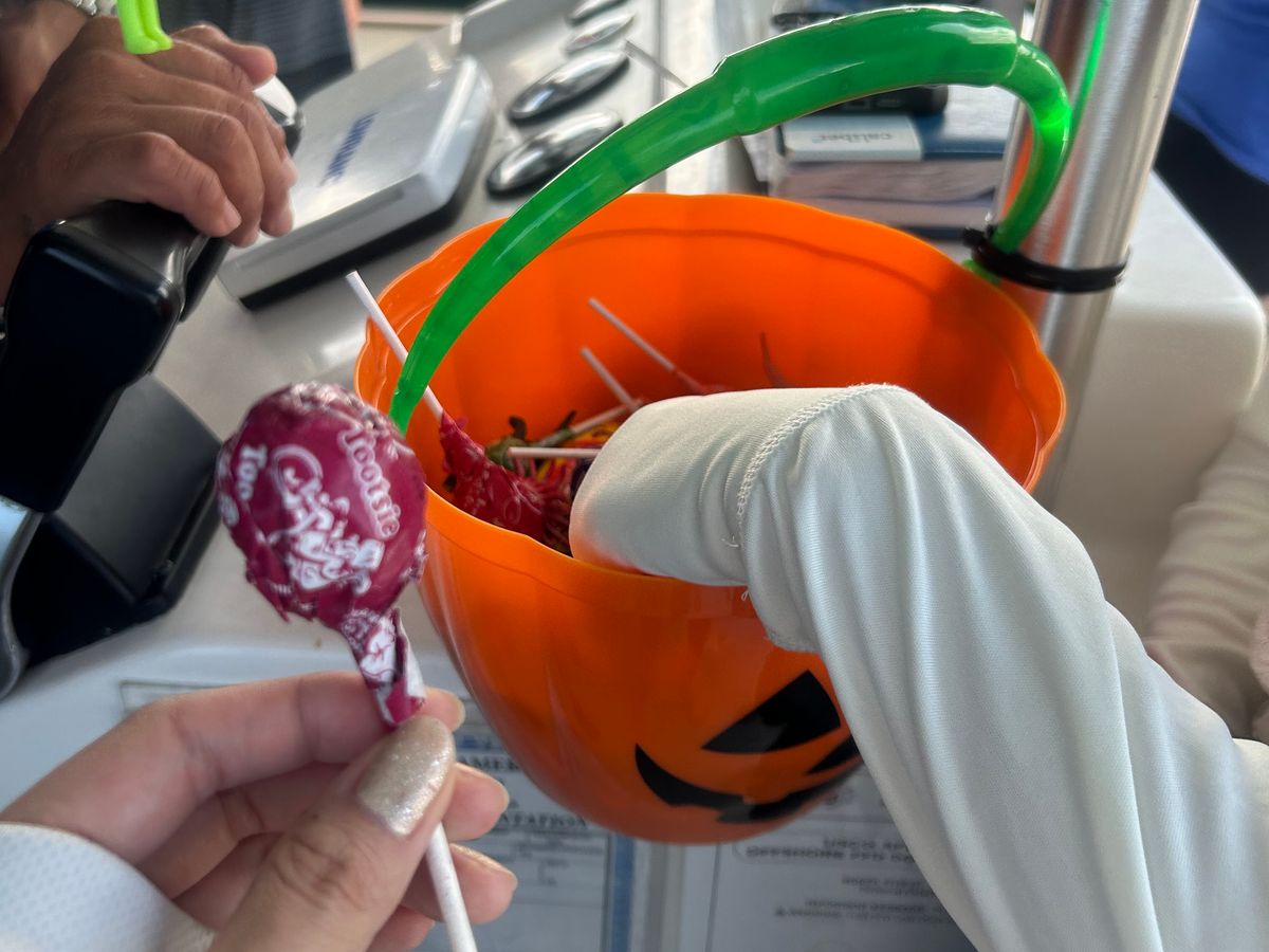 I was able to see sea turtles up close! There were plenty of drinks and snacks, and it was fun on the boat too! We also did trick-or-treating!