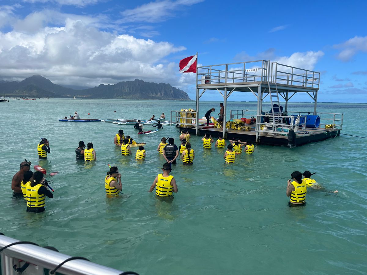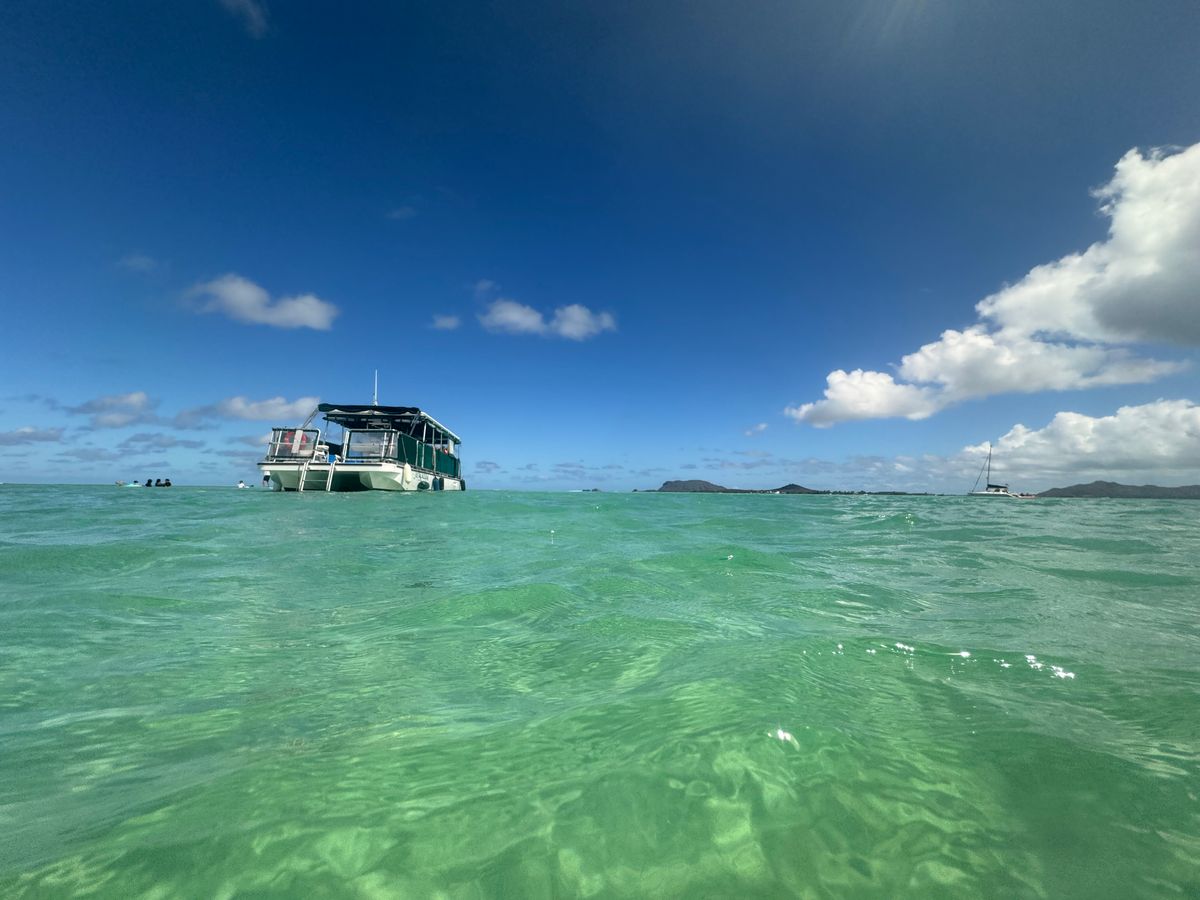 In the early morning, there are courses available in the morning, afternoon, and evening, and I chose the morning to head to "Kaneohe"! The ocean was even more beautiful than I imagined, and there was plenty of time to play and enjoy the sea. The guide informed us that there’s a high chance of encountering "honu" (sea turtles), and while looking at the surface of the water, everyone suddenly pointed at the sea (laughs). This time, I participated with my family, and we returned feeling warm and happy. I was a bit concerned about the restroom situation, but overall, it was a lot of fun!