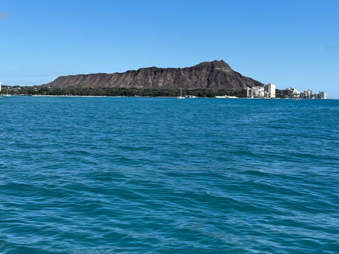 Since I didn't want to go snorkeling, I thought about taking a boat out to sea, so I searched in the morning and boarded a boat around 2 PM that day. I didn't get to see a honu, but I did see a pod of dolphins! They swam very close to the side of the boat, and I was really happy! You can see Waikiki from the ocean side, and there's a chance to meet dolphins, so I would like to use this service again.