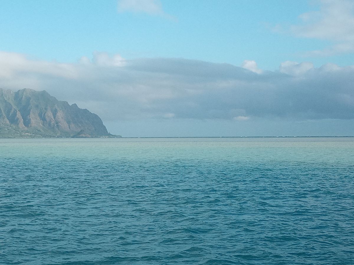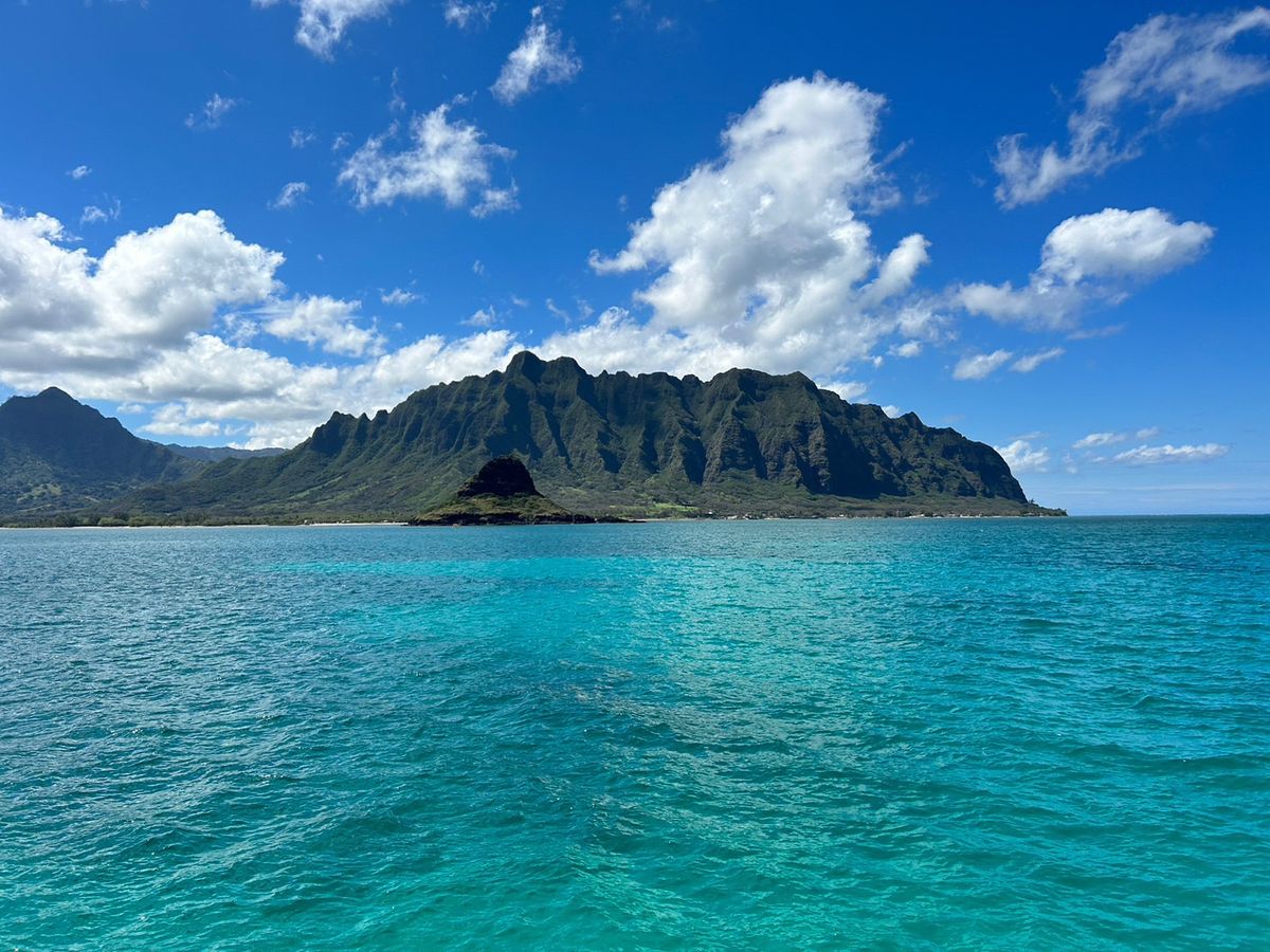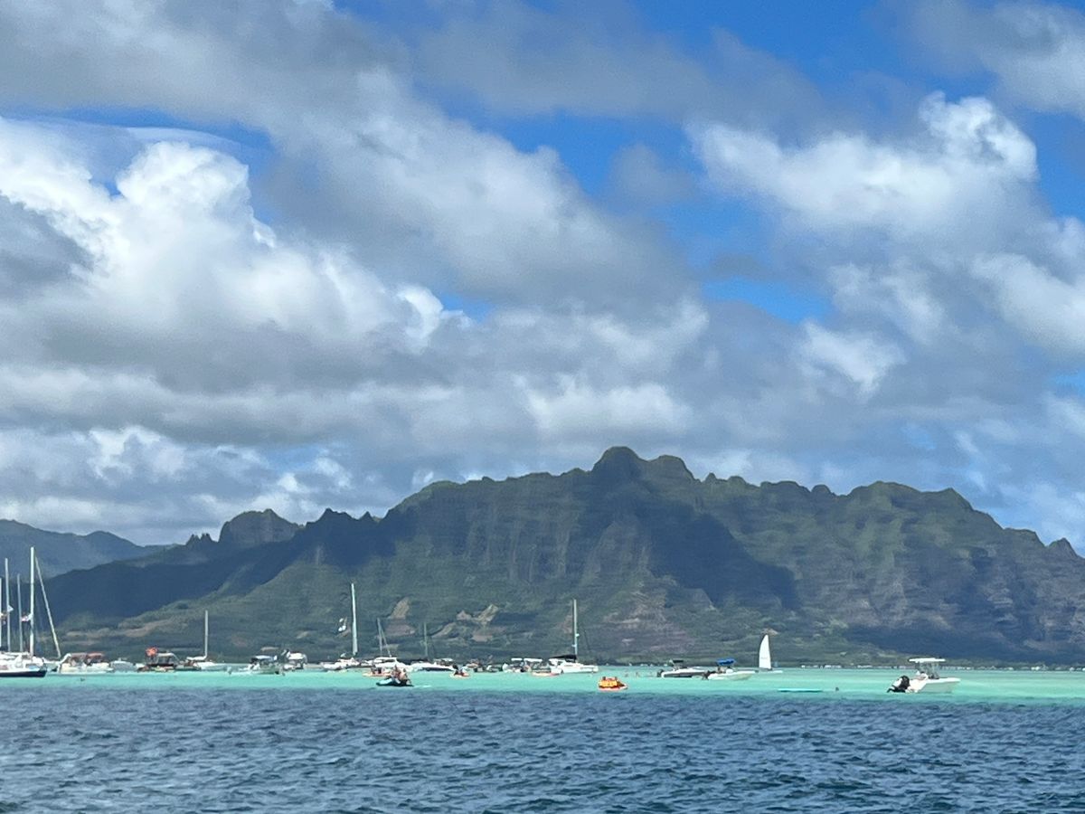 Kaneohe Bay experiences changing weather throughout the day, with sunshine, clouds, and sudden rain. Each time, you can see a different kind of beauty, which is quite fascinating.