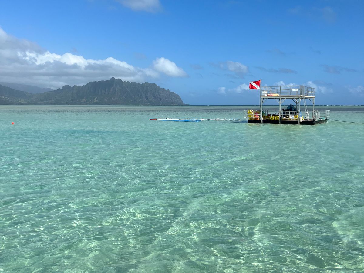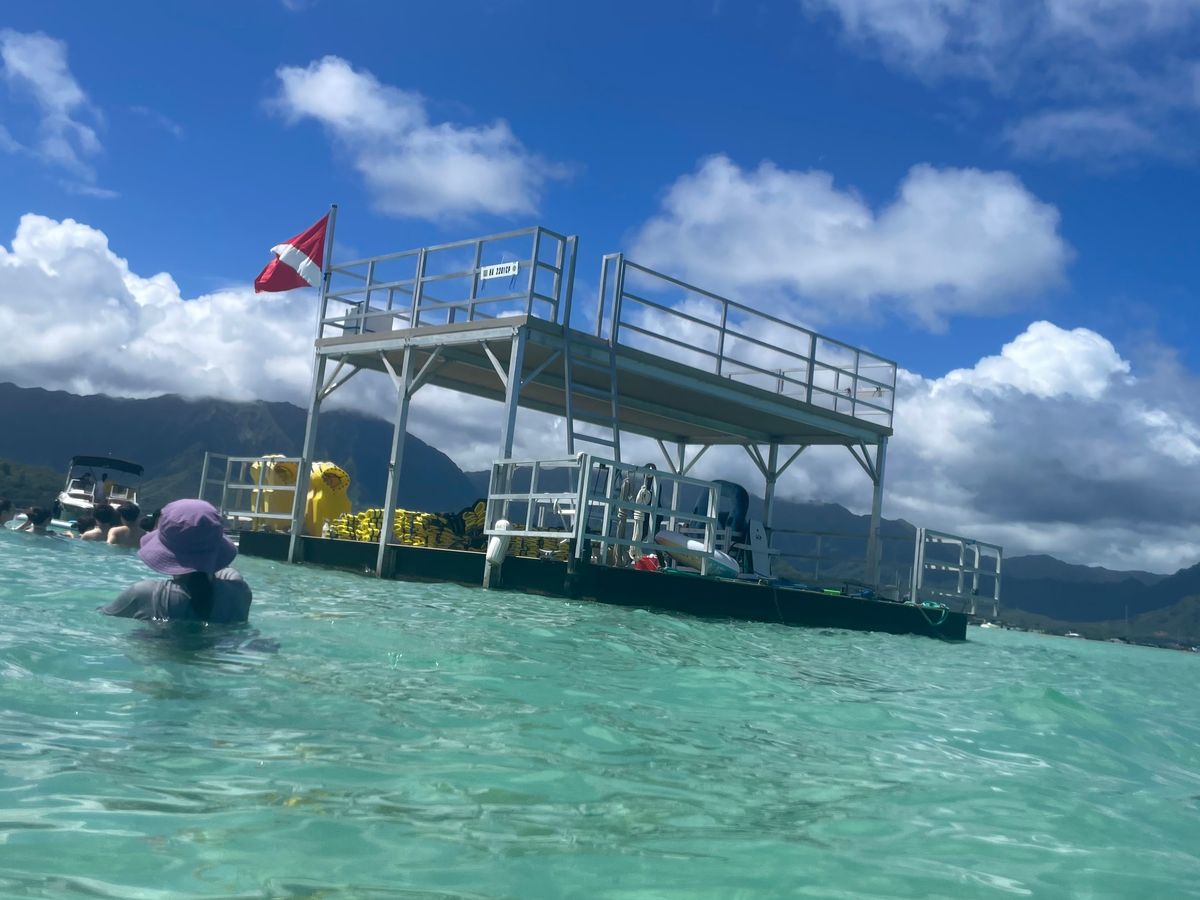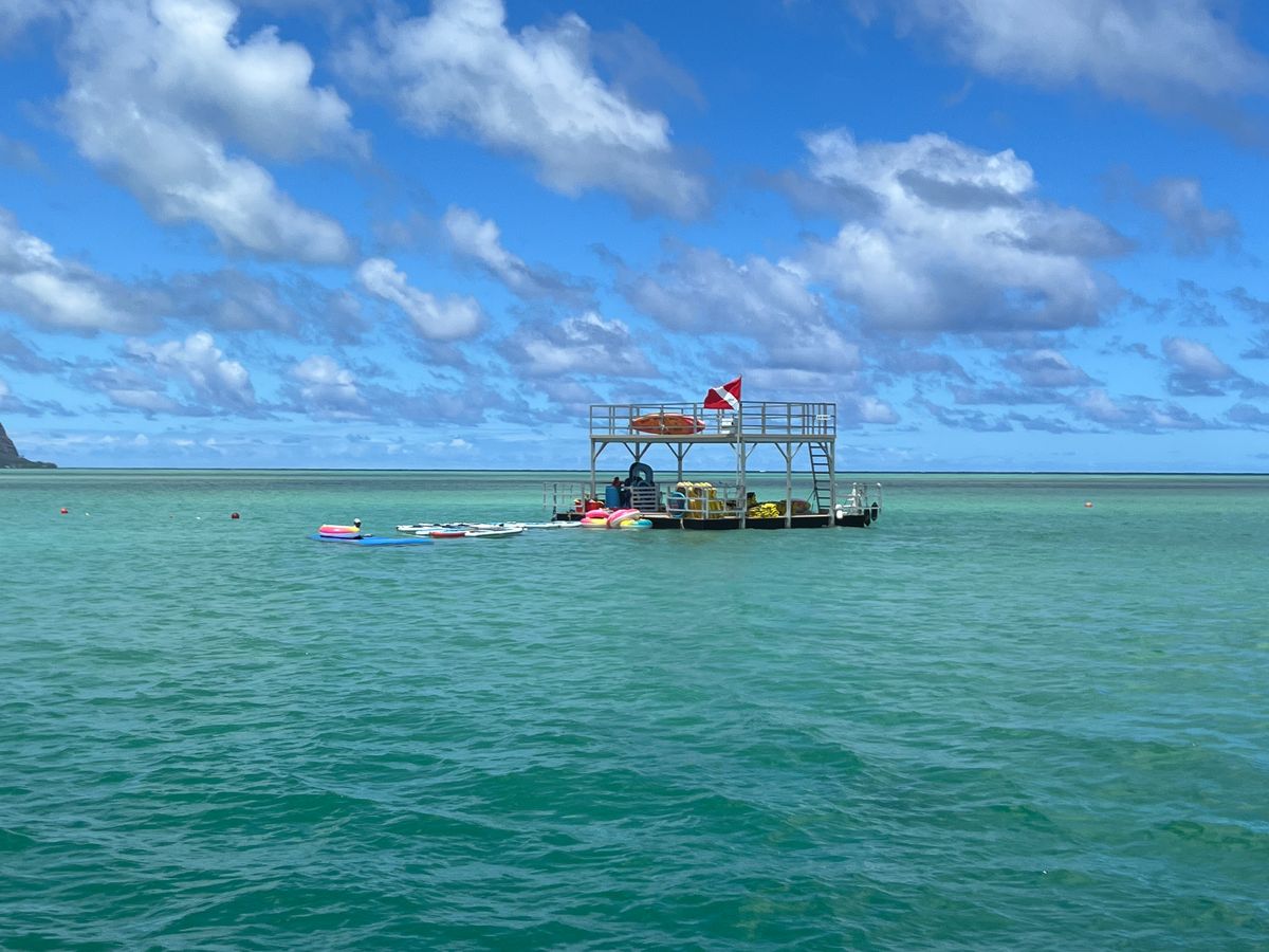 友人2人とツアーに参加しました。10月雨季だった影響もあり、サンドバーは思っていたより水深は深めでした(胸下あたり)が、浮き輪で遊びながら白い砂地の美しい景色を十分楽しめました。シュノーケリングは初体験で、あまり泳ぎも得意ではなく不安だったのですが、ライフジャケット装着で安心ですし、解りやすく事前にレクチャーあり、浅瀬での練習時間あり、ガイドさんが数名で見守ってくれるのでフォロー体制も十分でした。想像以上に深いところまでいくので怖かったですが(雨季の影響もあるかも?)、必死について行きながら、サンゴやウミガメも見れて貴重な体験ができ満足でした。行きも帰りも何度も船の上からウミガメに会う事ができ、ハワイの自然を感じる事ができました。軽食のスパムおにぎりも美味しかったです。少し値段はお高めかな?と思いましたが、ツアーだからこそ体験できる価値もあり参加してよかったと思っています。ハワイの自然に触れる貴重な体験ができるので、絶対おすすめです。