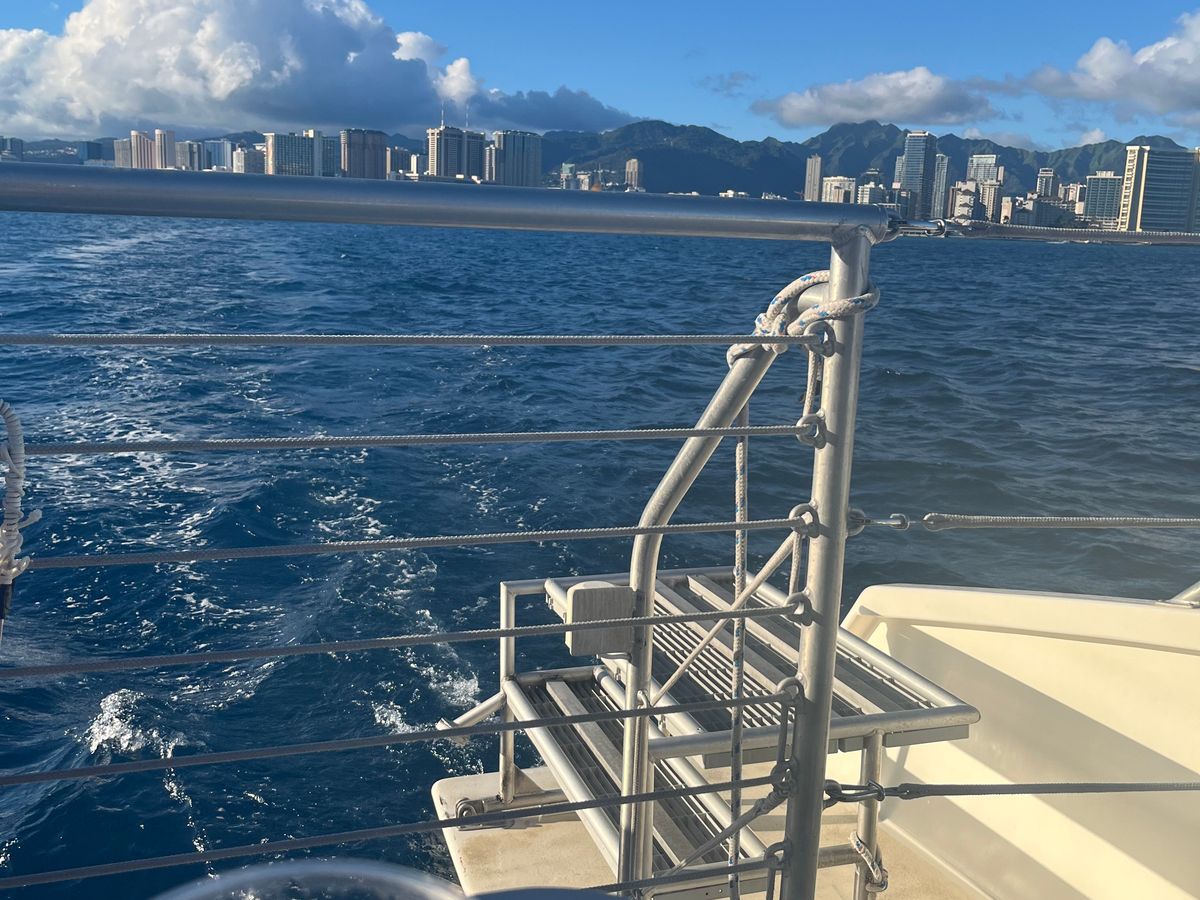 Aloha! Thank you for participating in Dolphin University, LR. We also appreciate the adorable photos of the spinner dolphins swimming at the bow and the five-star rating. Meeting the dolphins in the magnificent and beautiful nature of West Oahu is the best experience!! You were very lucky to swim alongside the boat for a long time and see them jump!! We apologize for the disappointment caused by the inability to use the warm water shower on the day of the tour. Please come visit us again when you're in Hawaii. Mahalo nui and a hui hou!