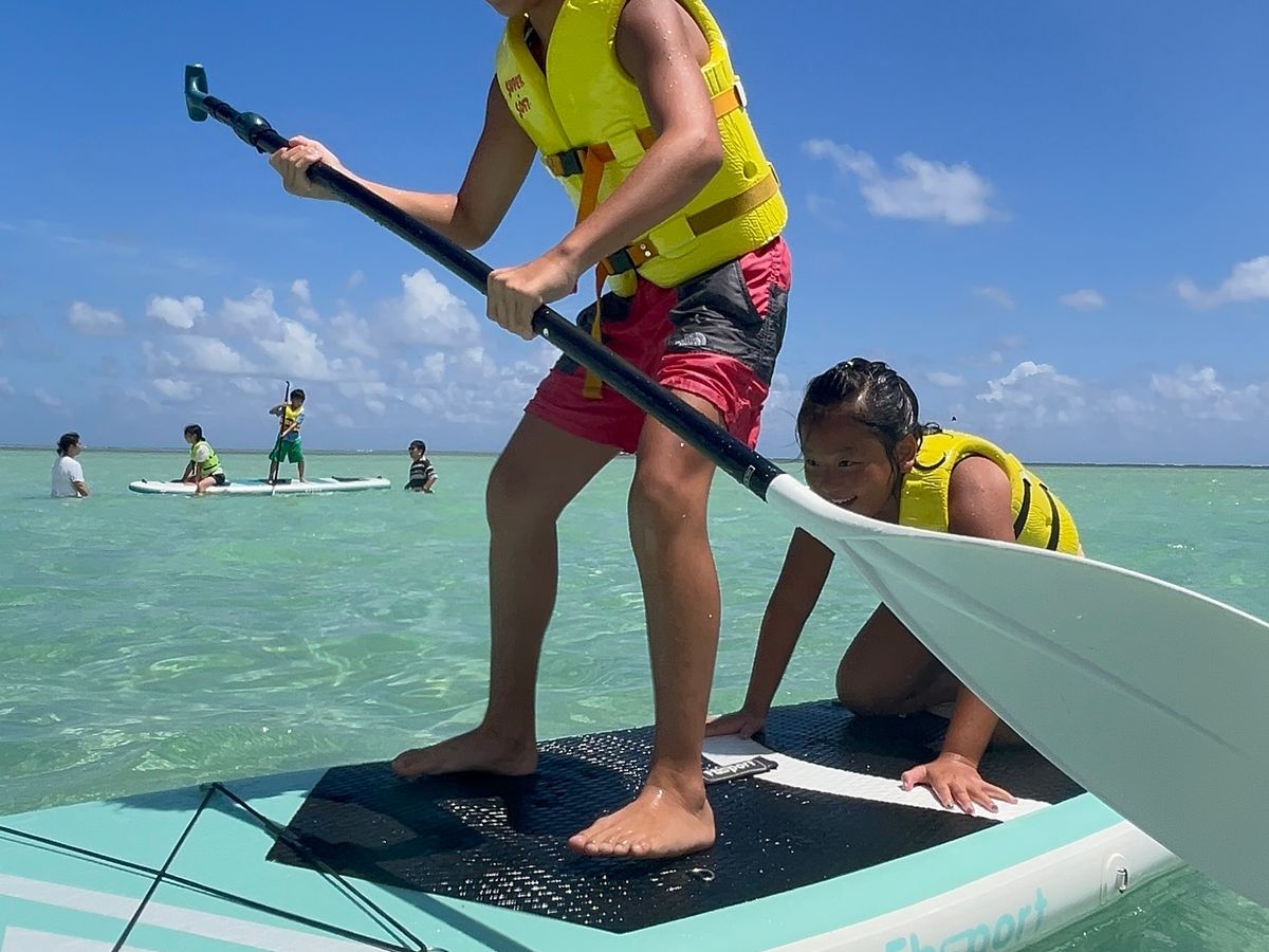 We continued from last year. This time, we checked the tide conditions and made a reservation, so the water was very shallow and the weather was nice, making it really beautiful. There were many children, so I couldn't be pulled along for snorkeling like last year, but we were able to see a lot of fish, and afterwards, we had a great time playing at SAP. I think I will participate again next year.