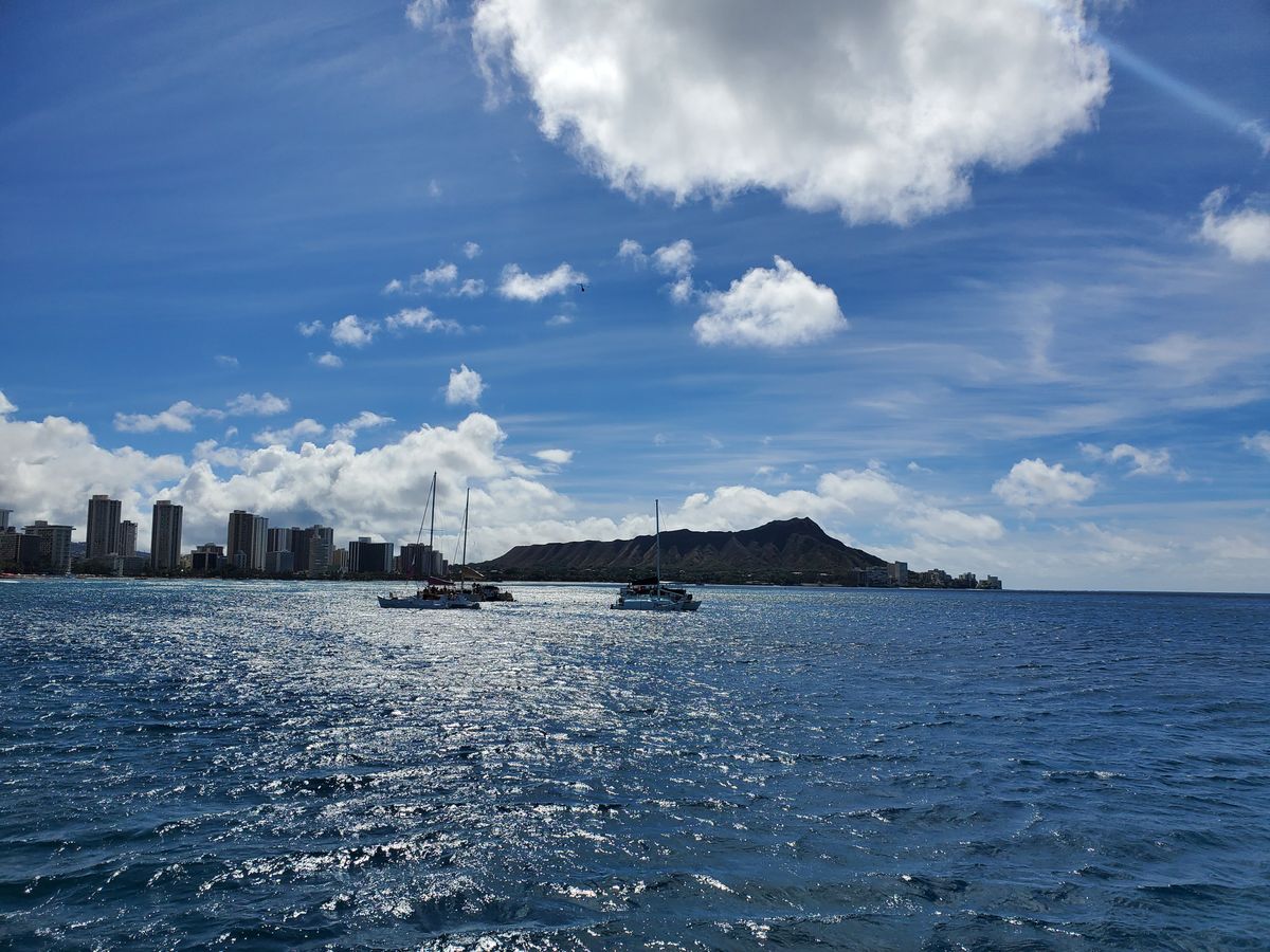 The weather was very nice, and the scenery was great! The crew was cheerful and kind, constantly providing drinks and taking photos for us. We were able to see sea turtles and seals from a distance! Going further out to sea and looking at the beach and the view of Diamond Head was exceptional! Riding the waves felt like a roller coaster and was thrilling. However, one of the kids (a middle schooler) got a bit seasick. Thank you to the staff for their support. While I and the other family members were fine, I recommend that those who are concerned take motion sickness medication before boarding. It was a wonderful experience sailing, something that doesn't come by often!