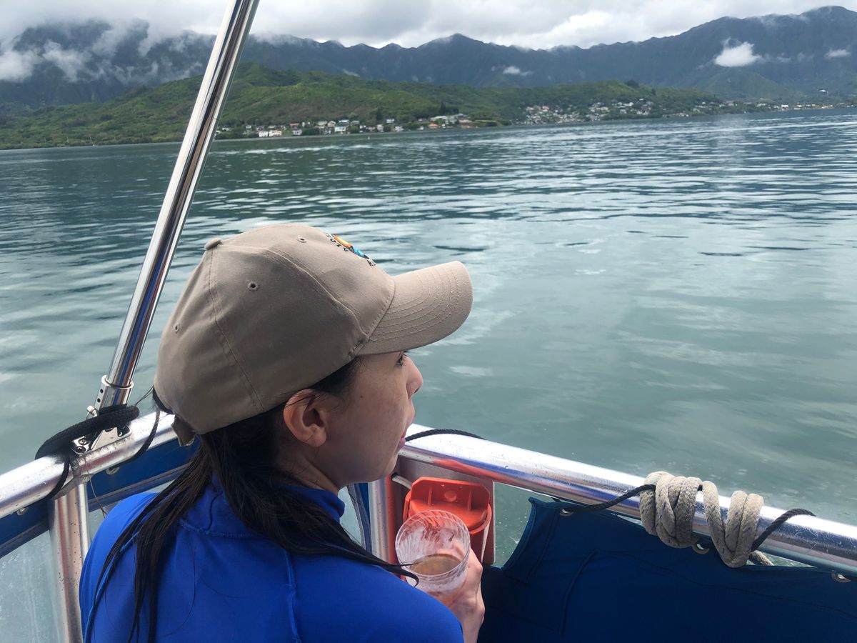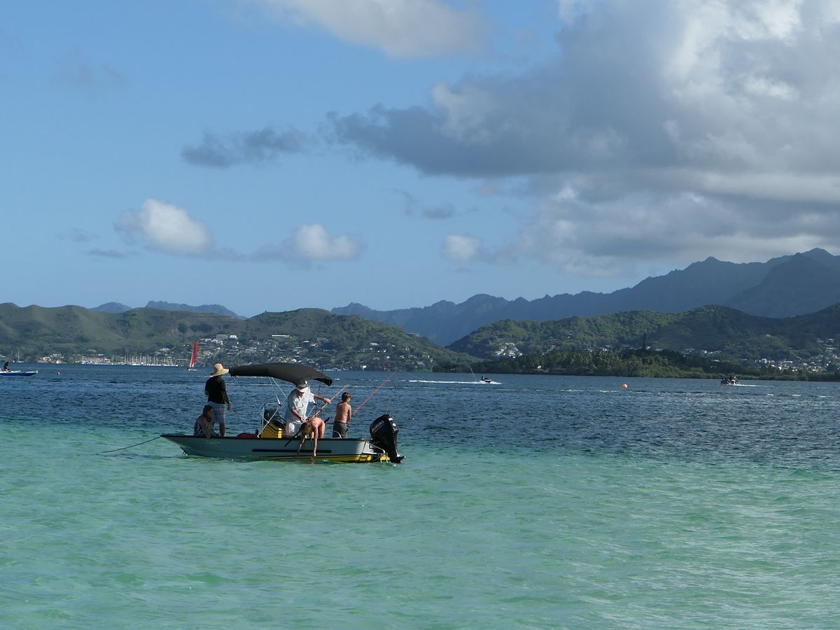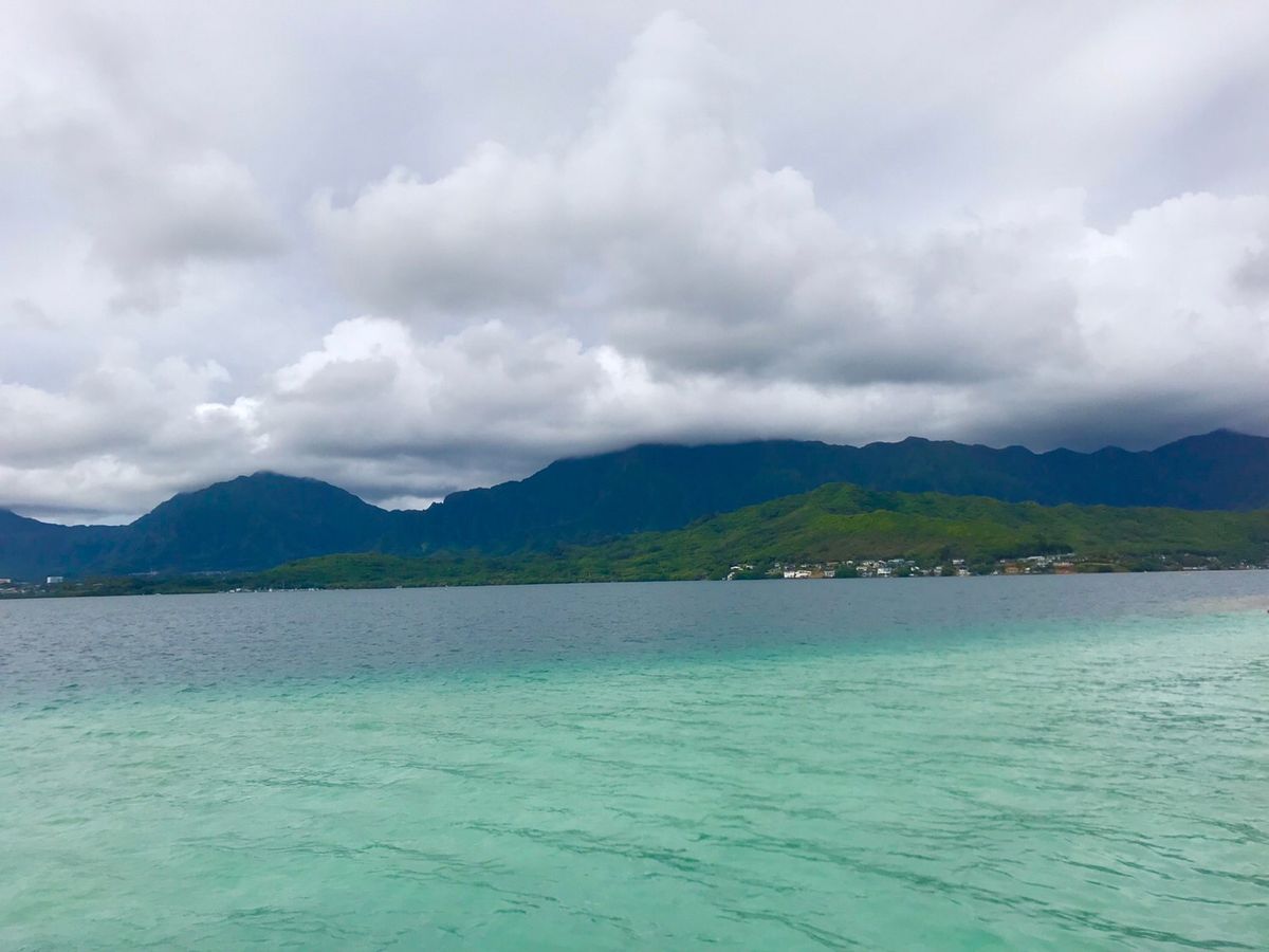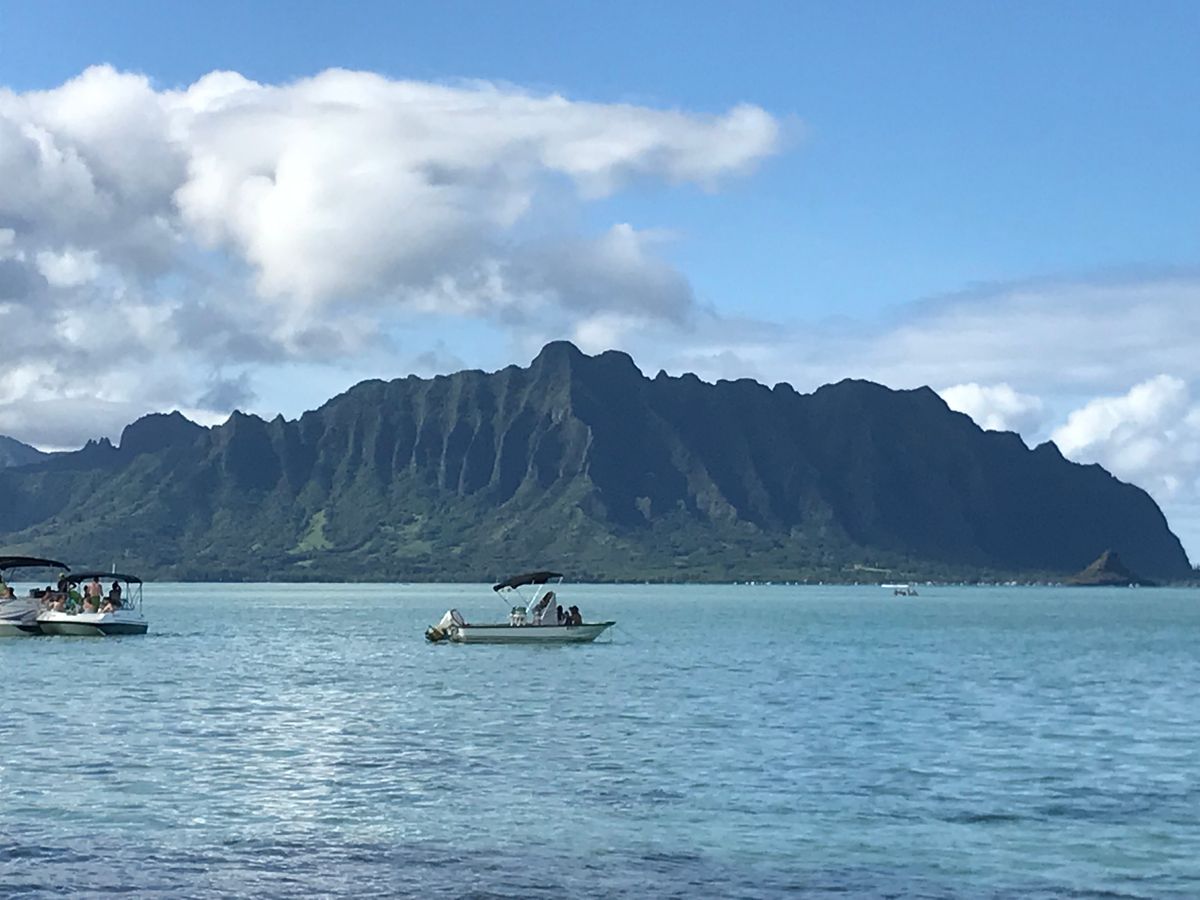 You can clearly see the boundary between the deep blue sea and the clear light blue water. In the distance, you can see the mountains of Oahu and Kualoa Ranch. The view was amazing.