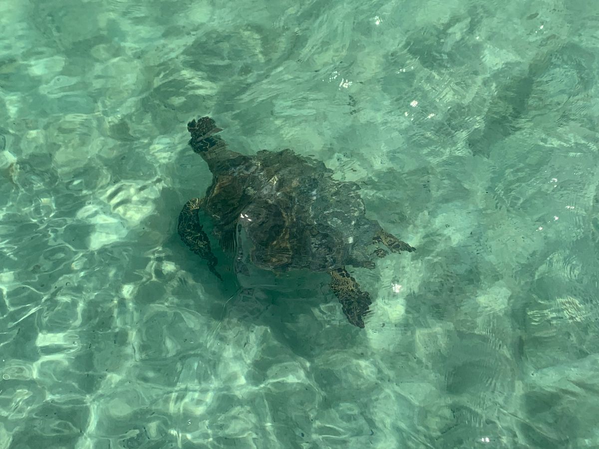 I was so excited to see so many dolphins and turtles. The dolphins jumped and spun around, putting on quite a show, and the turtles came close enough to touch, so I was trying to avoid touching them. Later, I heard that it was fine if the turtles touched me, so I should have just stayed still!