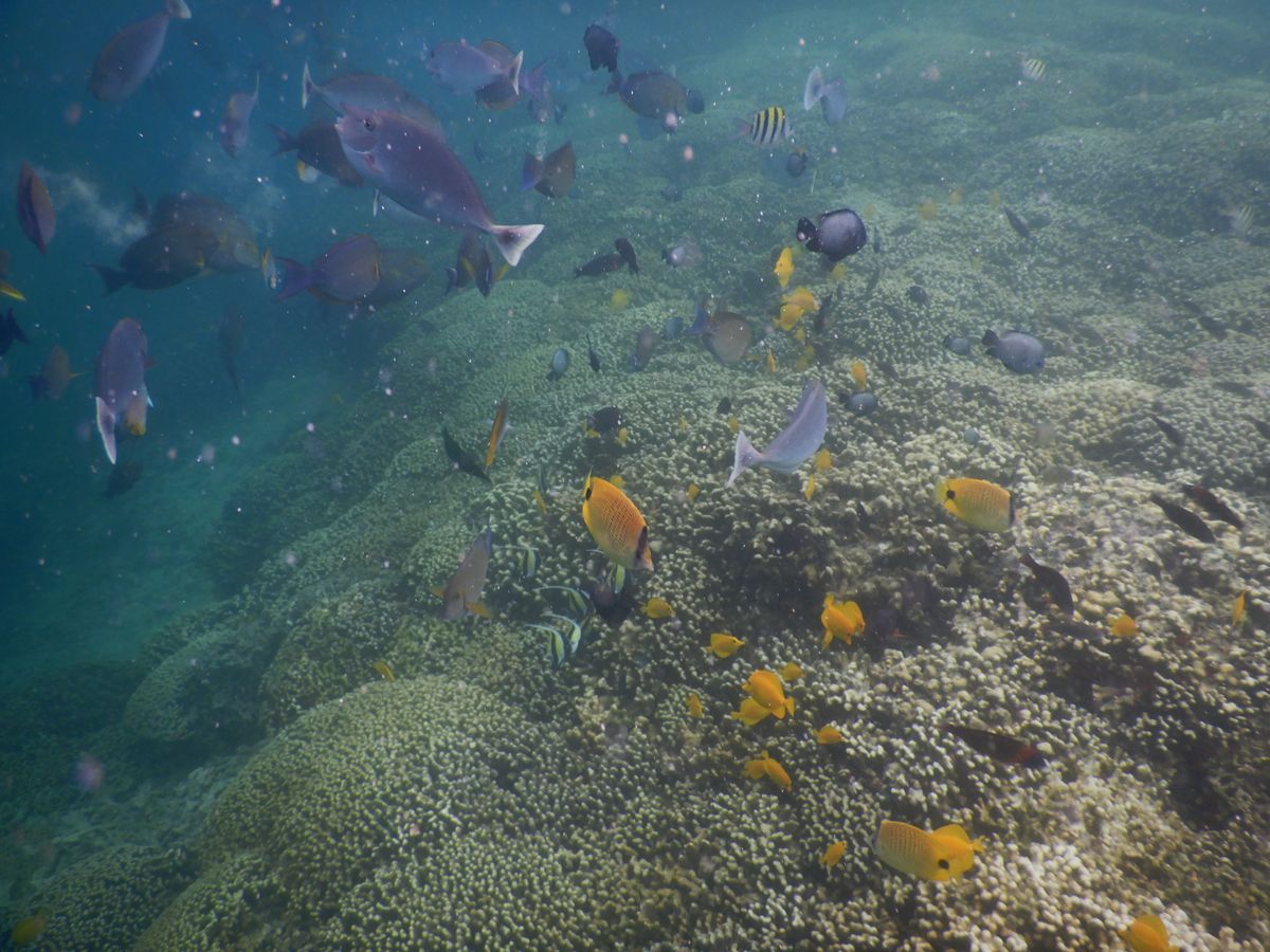 ウミガメの遭遇率は相当高いようで、私達も見ることができました。向こうから近寄ってきてほとんど触れるくらい(触るのはNGらしいです)の近さまで来てくれました。