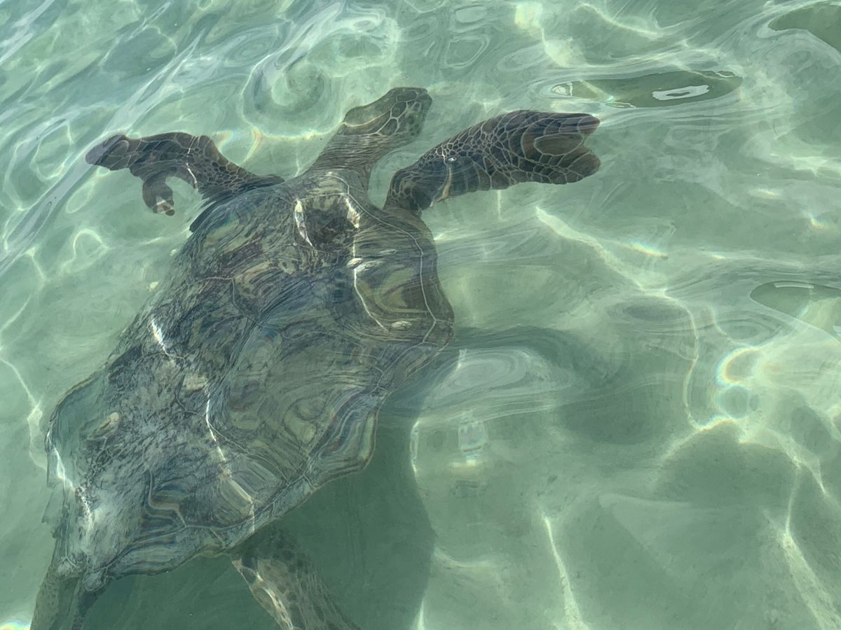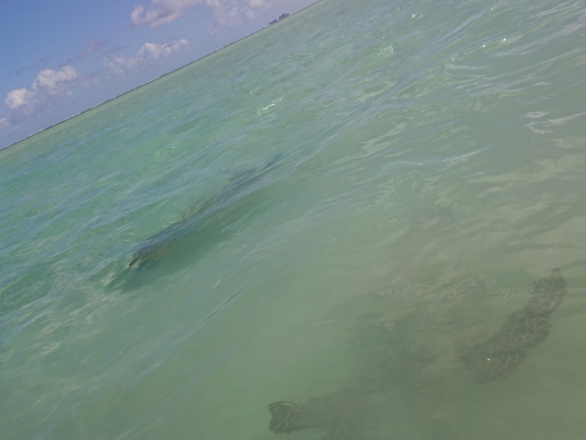 ビーチサンダルを脱いで裸足で乗船。息子が船酔いを心配していたのですが酔う前に(笑)サンドバーに到着。浅い所でも膝下くらいで砂浜は出ていなかったのですが、陽が当たる海はキラキラしてとても綺麗でした。シュノーケルでもバッチリ亀を見ることができました。