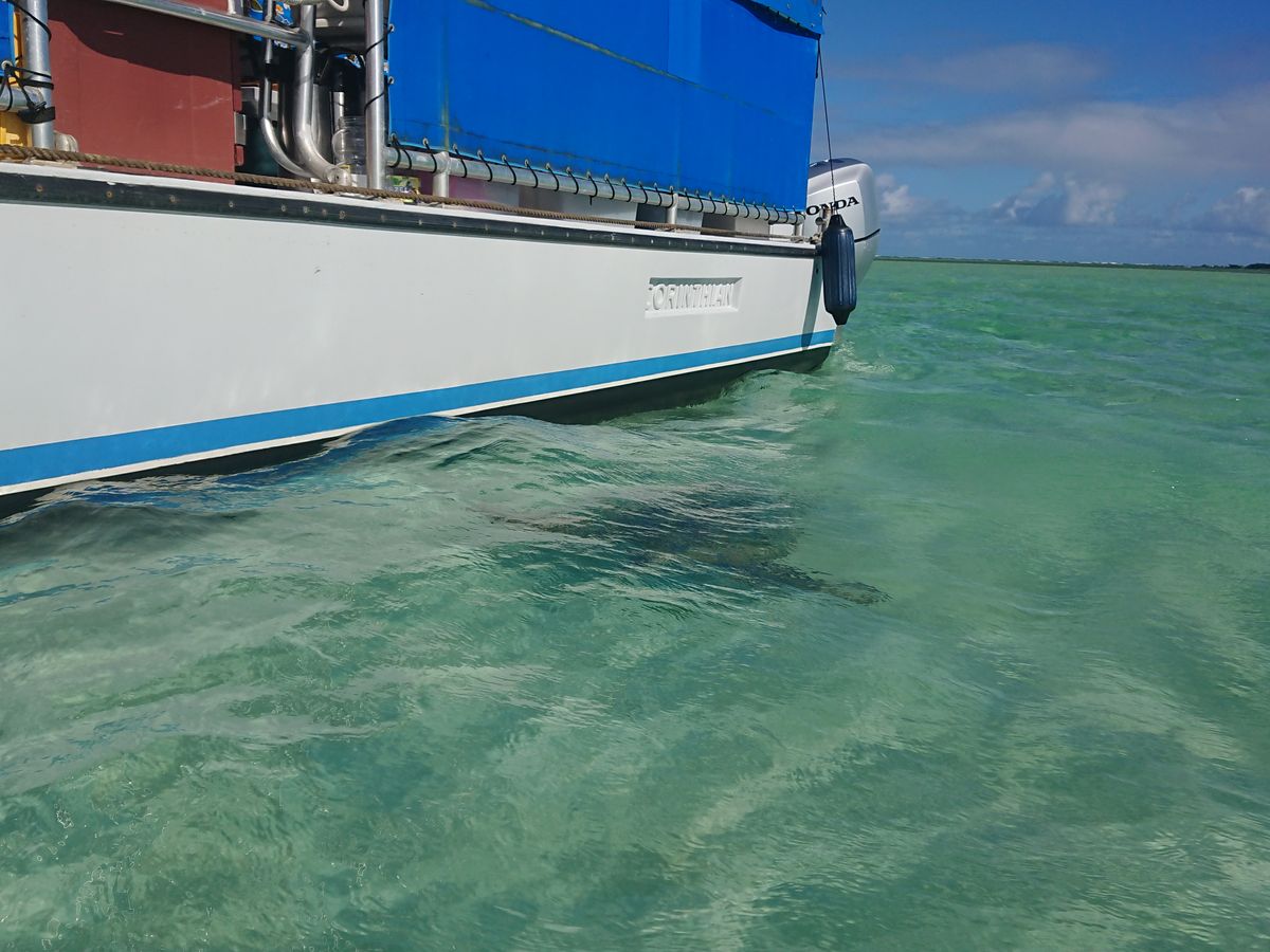 港を出てすぐ、準備をする暇もなくイルカの群れがーっ!急いで飛び込み堪能したところでウミガメ、エイも登場。