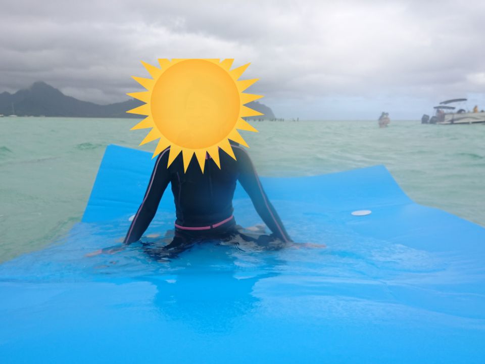 It was a wonderful day with no wind, and the view of the distant Kualoa mountains was crystal clear. I checked the low tide times during my trip and participated in the morning Heaven on the Sea tour. Surrounded by coral, I was able to swim with sea turtles while snorkeling. I also got to see many colorful tropical fish, and the marine activities were plentiful and very enjoyable. Next time, I would like to go when it’s - feet.