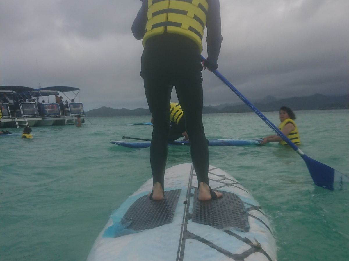 The weather was not great because it was the rainy season, but the water was relatively clear, and I got to see a honu (sea turtle), which was amazing. I also had the experience of stand-up paddleboarding and kayaking, and the time flew by. The guide was excellent.