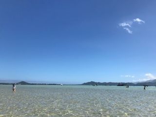 当日は風もなく遠くクアロアの山並みまでくっきりと見えるほど晴れ渡った素晴らしい日でした。サンドバーは旅行中で最も干潮の時間を調べて朝の天国の海ツアーに参加しました。