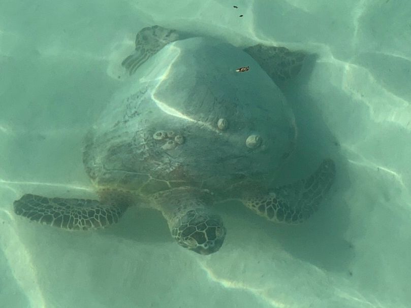 肝心のウミガメも、シュノーケルで何匹も見れましたし昼食時間中船の近くまできてくれたのでとても近くで見ることができました!すごく可愛いくて最高でした。いい新婚旅行の思い出になりました。家族もよんでまた体験したいと思います。