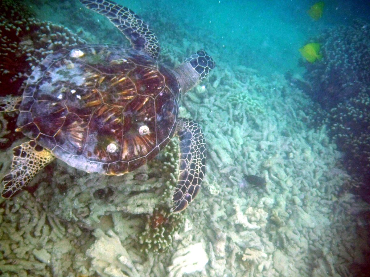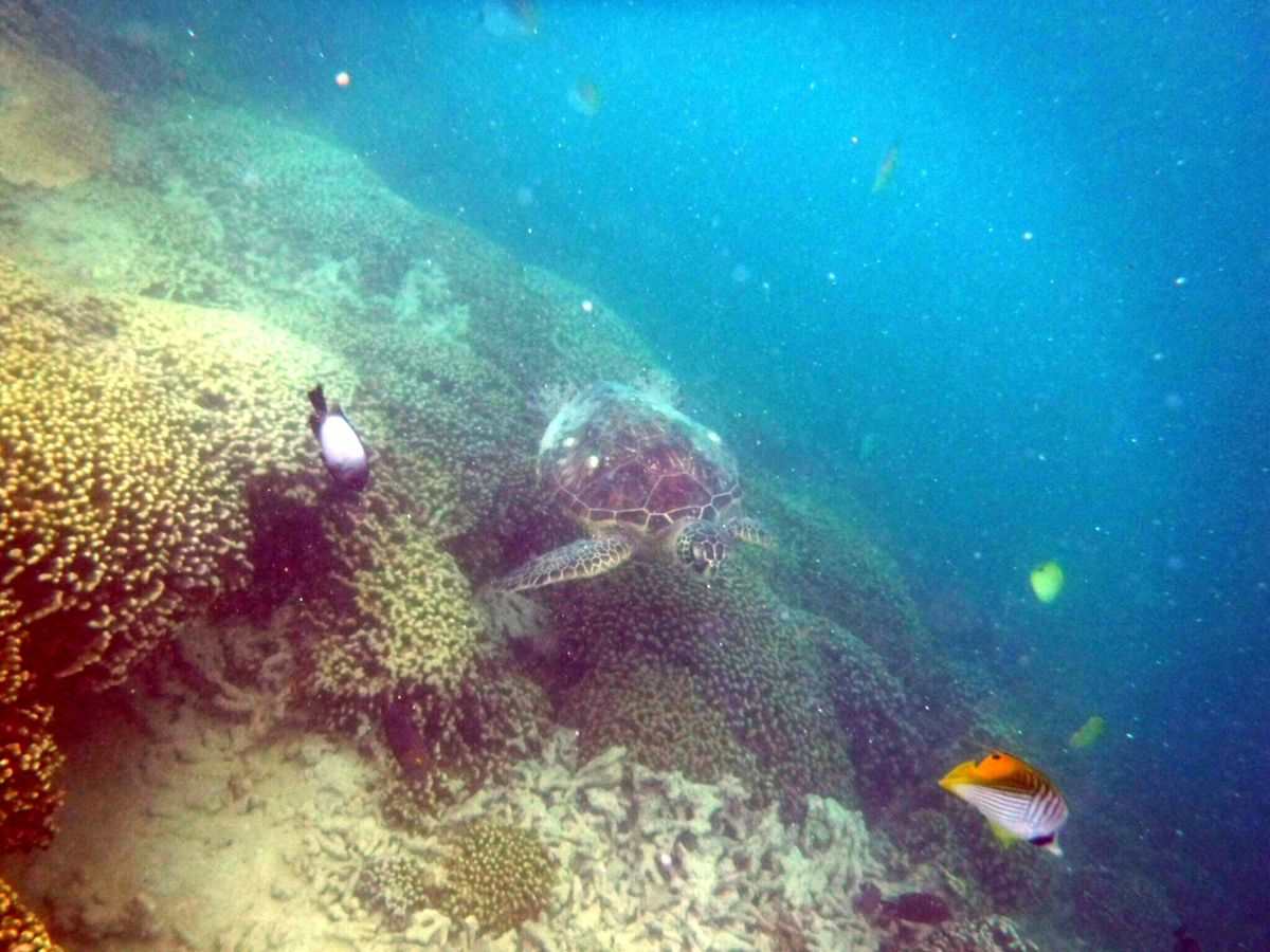 - I encountered sea turtles! Two were swimming, and two were under the coral reef while snorkeling.