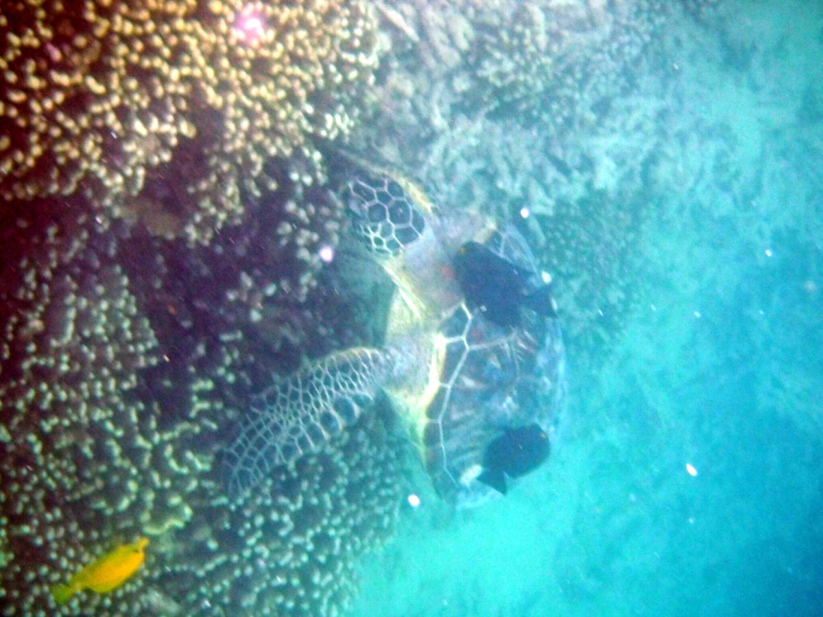 ・海ガメに出会えた!2匹は泳いでて、2匹はシュノーケル時にサンゴ礁の下に
