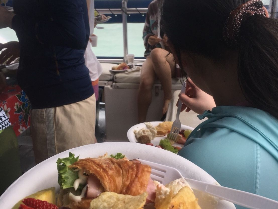 It may depend on the season, but on the day we participated, the water was very cold and there was a bit of wind, so we couldn't go snorkeling. Even while playing at the sandbar, it was just too cold (laughs), and we quickly got back on the boat. Still, the magnificent view of Hawaii from the sandbar was really wonderful. As for lunch, don't have too high expectations (laughs).