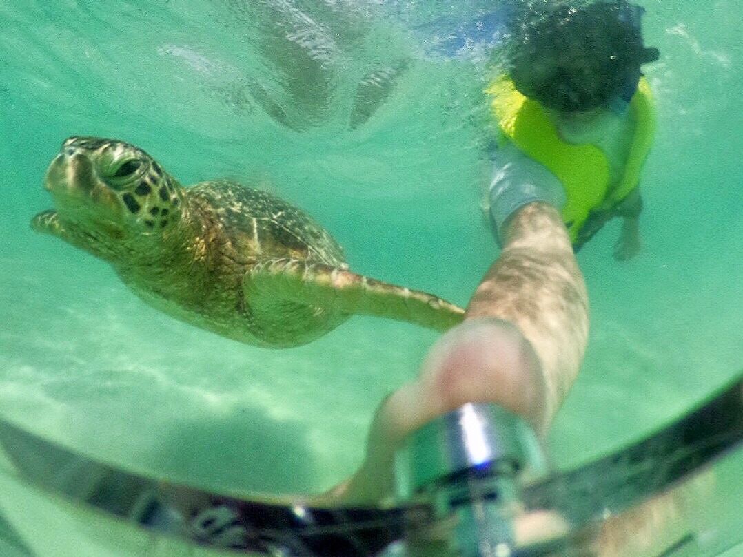 Aloha! Thank you for joining the Captain Bruce's Heavenly Ocean Tour. It was great to have a photo with the honu! Please come back to play in the Heavenly Ocean again for another reunion with the honu.