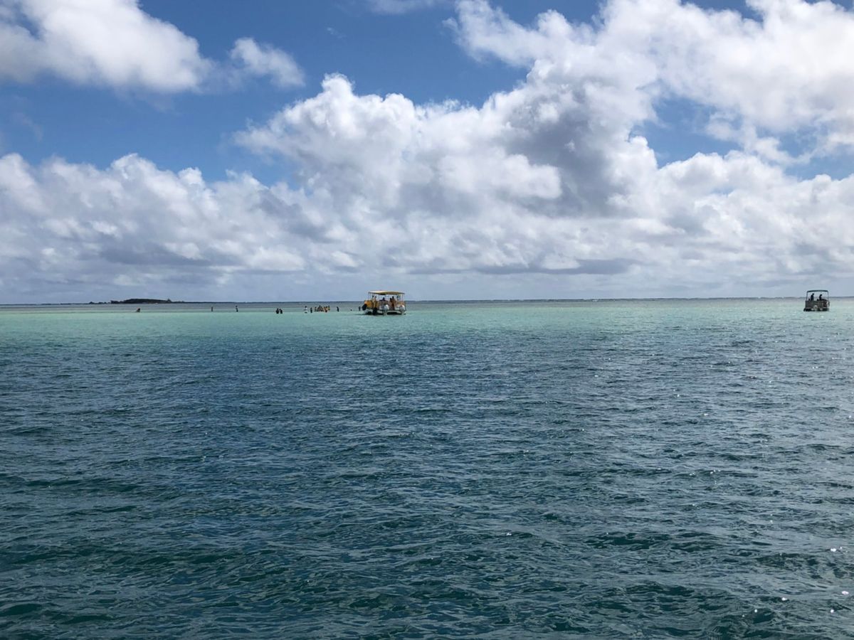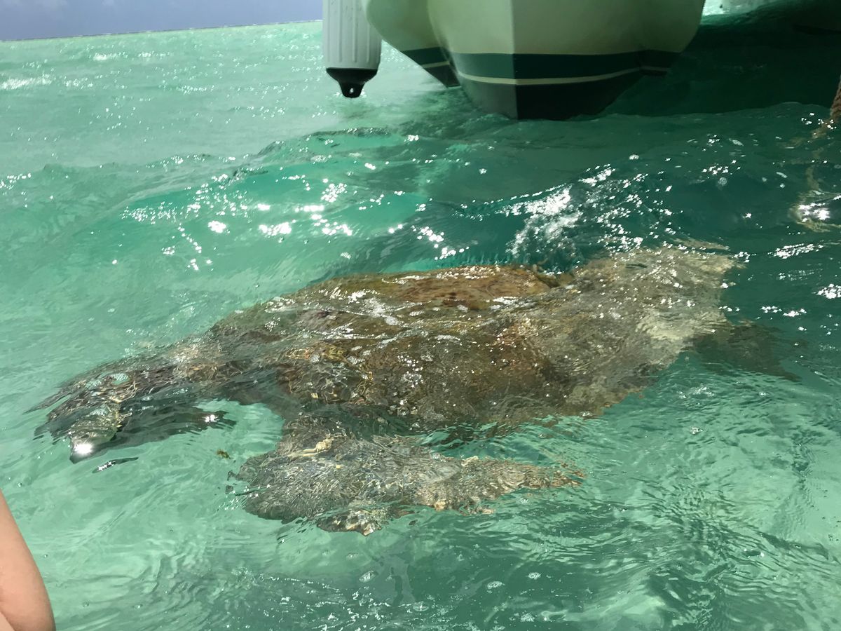 何回か午後のツアーに参加してますが、以前のほうが水位は低かったような・・・。今回はサンドバーにたどり着くまで歩いてる際、母(身長152cm)の胸あたりまで水位が・・・。ちょっと残念でしたが、ボートの周りにとてもフレンドリーなウミガメ泳いでいたし、ランチもおいしかったです。