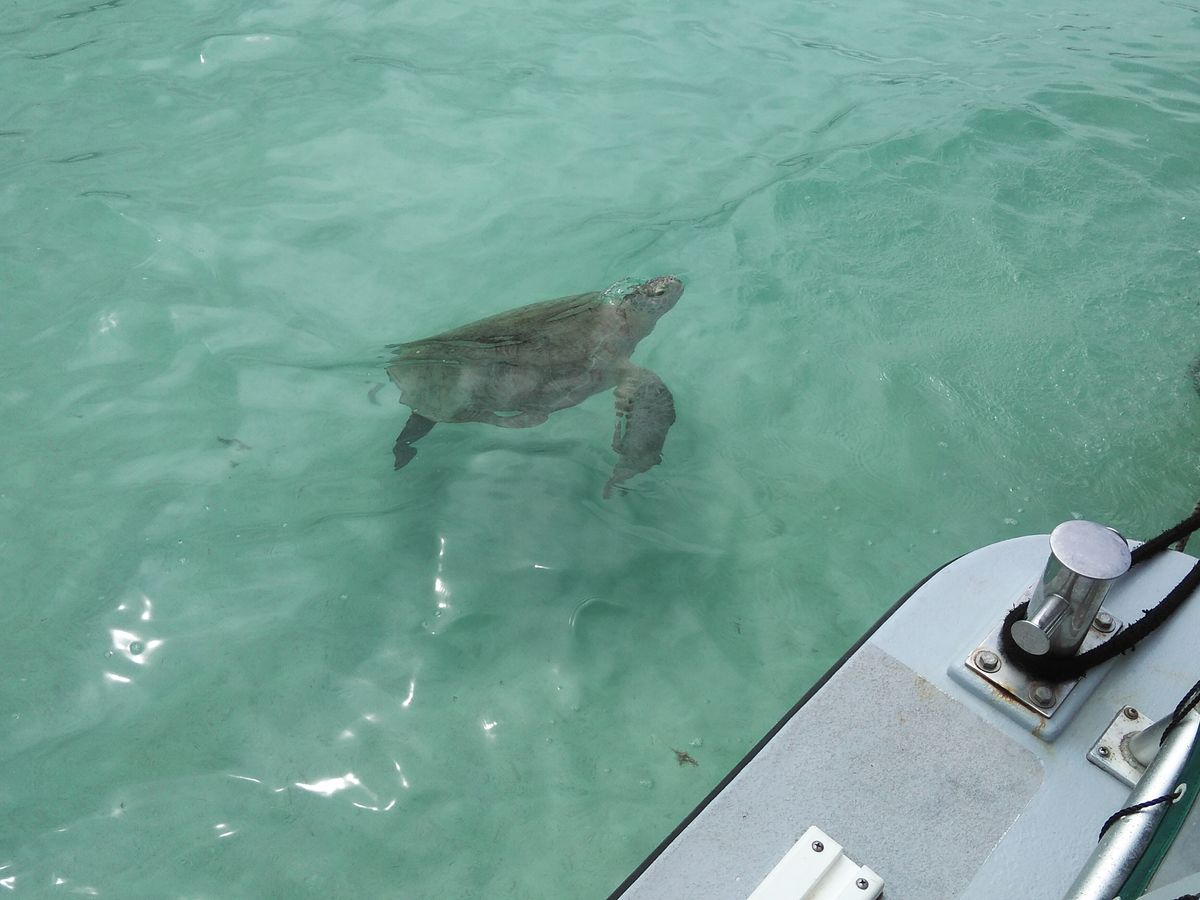 今回波が高めで泳いで帰ってくるのがつらそうだったので私はシュノーケリングには行かず、ボートの周りでウミガメと泳いでました。
