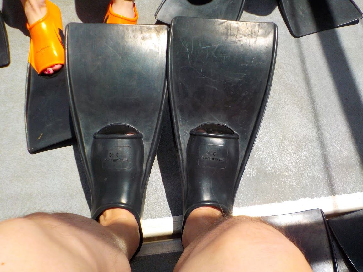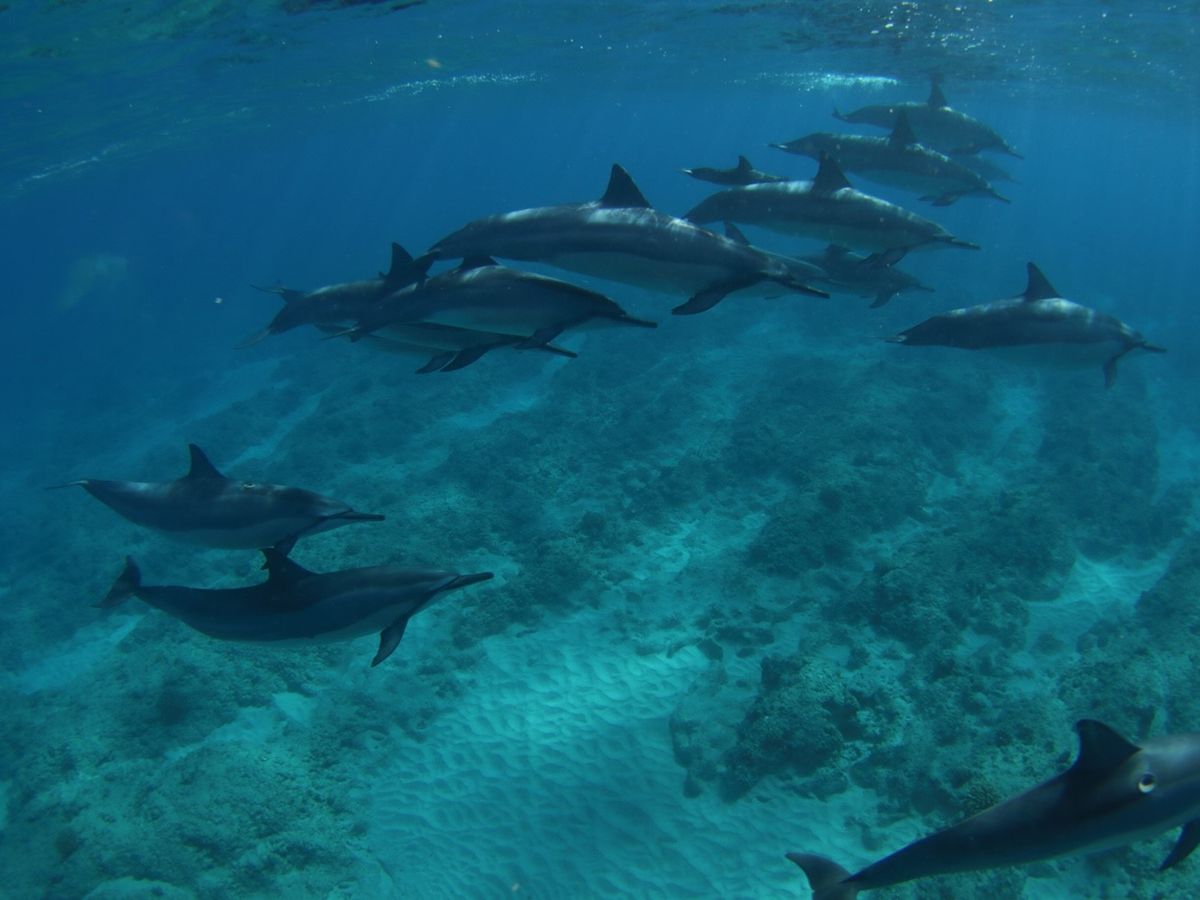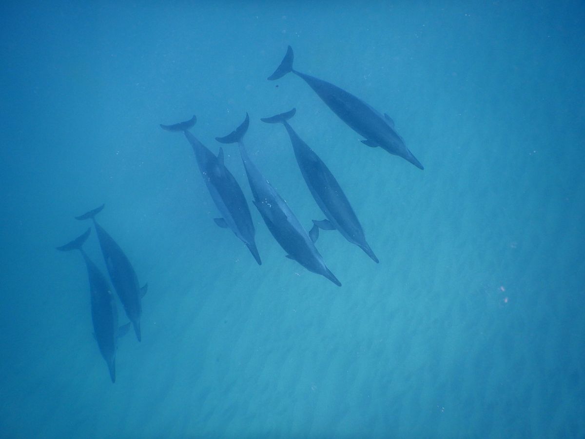 Once you spot a dolphin, you need to jump into the sea immediately and swim hard, or the dolphins will swim away. You'll be kicking with your fins until your legs are sore.