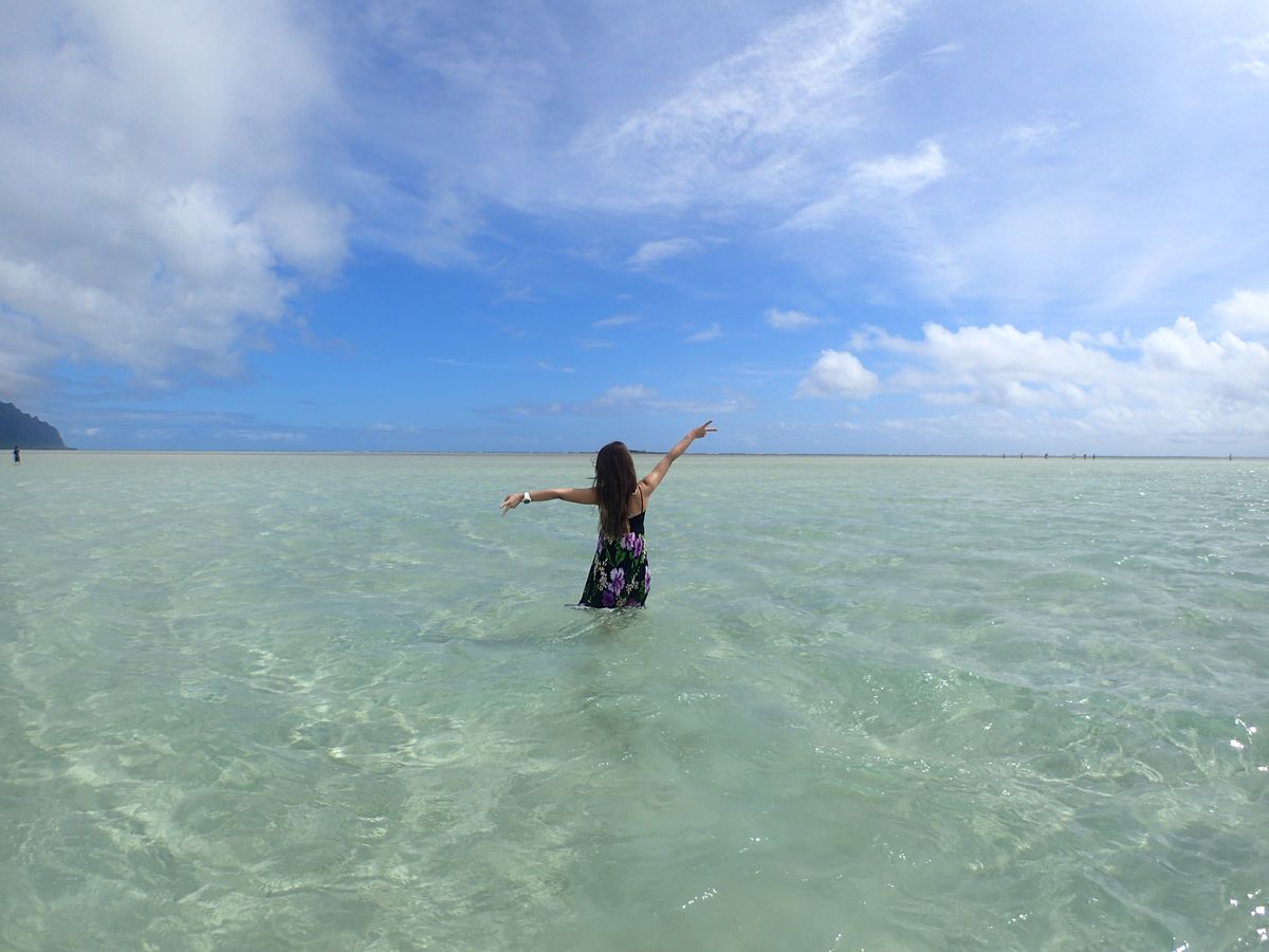 Before going to Hawaii, I was concerned about the weather, but it didn't rain and was cloudy instead. It was low tide, and the sandbar appeared beautifully, which was breathtaking. My friend, who was excited to see the honu (sea turtles), was thrilled to spot them popping their heads out of the water and surfacing for air while snorkeling among the corals. It was really great to see that. The crew on the boat was very friendly and provided explanations in Japanese, making me want to go again.