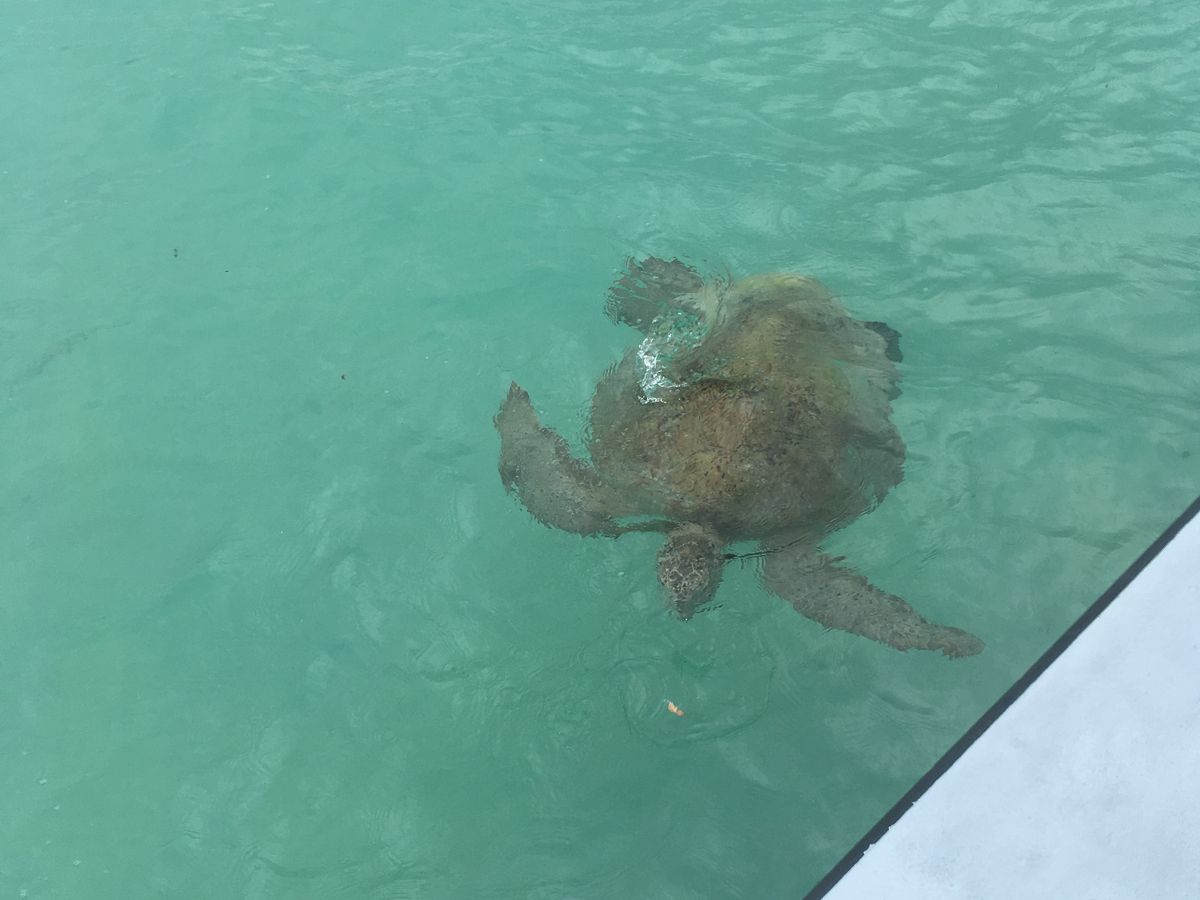 十分に海を楽しむことができなくて残念でしたが、亀が船の近くまでよってきてくれたので、よかった。