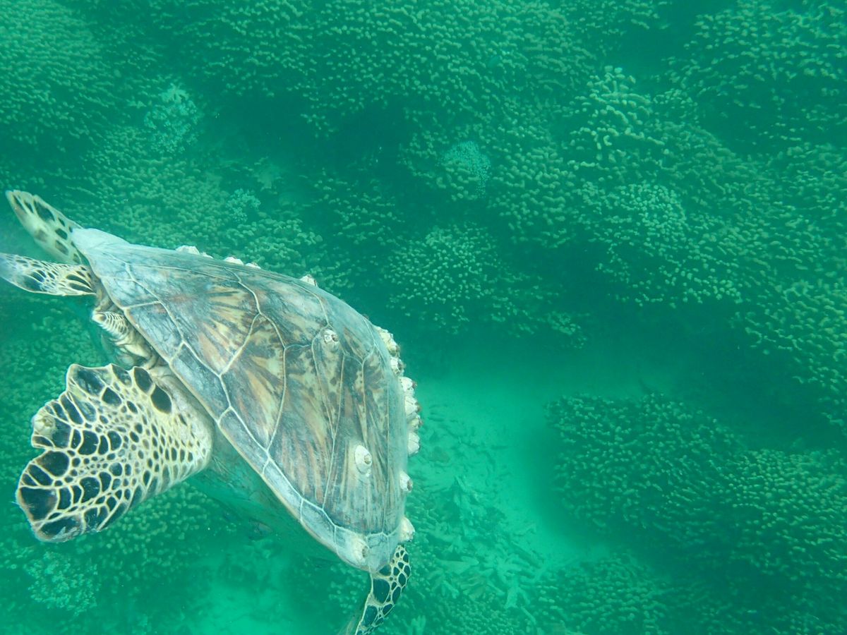 シュノーケリングでは亀が真横を通り抜ける!