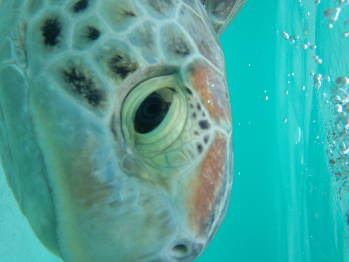 シュノーケリングでも休憩中の小さな海亀が居て、その子もじ~っと見てたら、