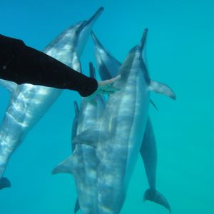 I love dolphins and visit SeaWorld in Japan several times a year to interact with them. My dream was to swim with dolphins in the wild! However, perhaps due to my high expectations, I felt a bit disappointed with the experience of swimming with them.