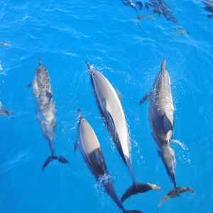 Seeing the dolphins jump while floating in the ocean and being surrounded by a pod of dolphins made me think, "I'm drifting in the same space as the dolphins," and I couldn't help but shed a few tears.