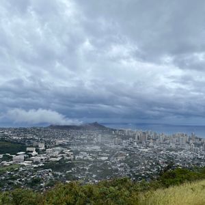 After our exploration, we were served sandwiches from Andy's, a three-generation establishment in Manoa, along with water at Tantalus National Park. (The sandwiches here are incredibly filling; I was full after just half and took the rest home. The taste was excellent too, with a delightful sweetness in the bread!) Since it had rained, we ate together under a pavilion. Normally, we could have enjoyed our meal on the grass, further immersing ourselves in nature. After eating, we moved to a spot where we could see Diamond Head, Waikiki, and the airport for photos. Initially, clouds obscured our view of Diamond Head, but the weather changed suddenly, and by the end, we could see a bit of blue sky. I thought it was a miracle.