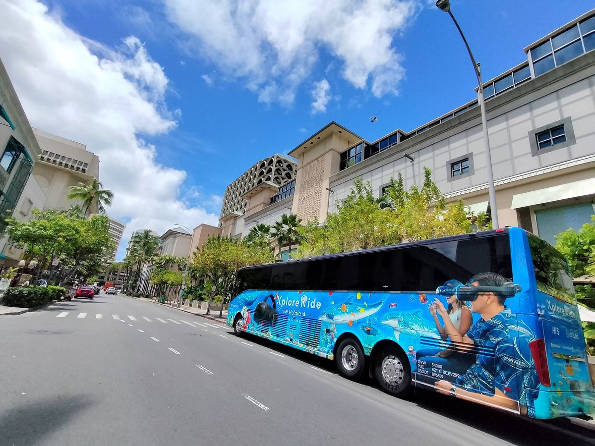 I participated from the afternoon of my arrival day. Since I arrived in Hawaii in the morning and couldn't check into the hotel until the afternoon, it was a nice point that I could join during the free time. The tour departs from Royal Hawaiian Avenue next to DFS. I was worried about getting lost, but the large bus with a blue ocean illustration caught my eye, and I was able to find it right away. There are also lunch spots nearby, like Aloha Table and Sticks, making it convenient to join before or after lunch.