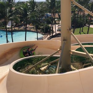 色々な種類のスライダーがあって、子どもたちは大好きで、ハワイに来るたびに来ています。